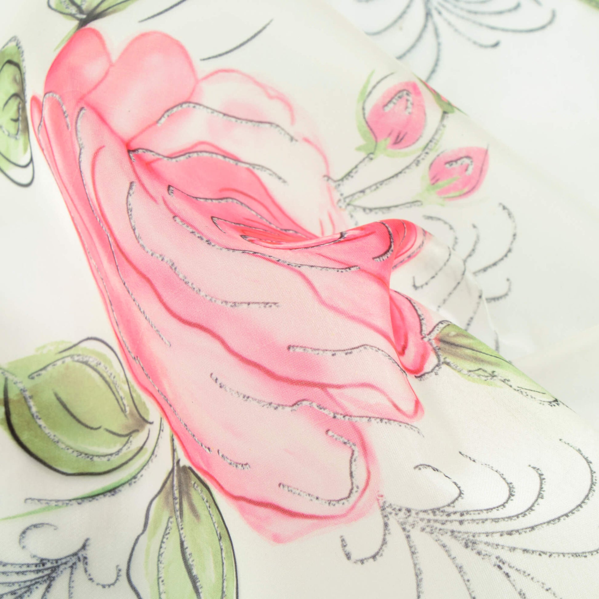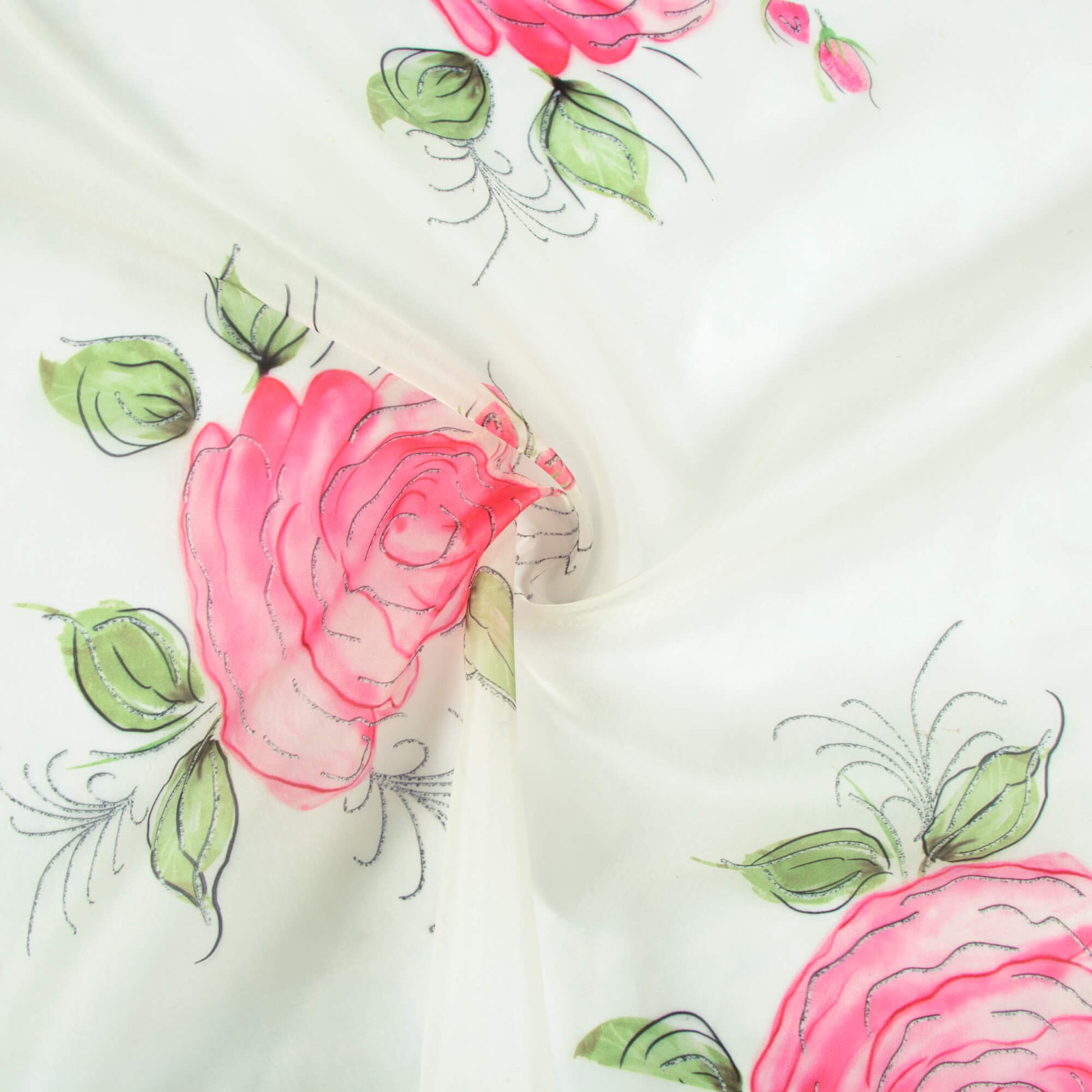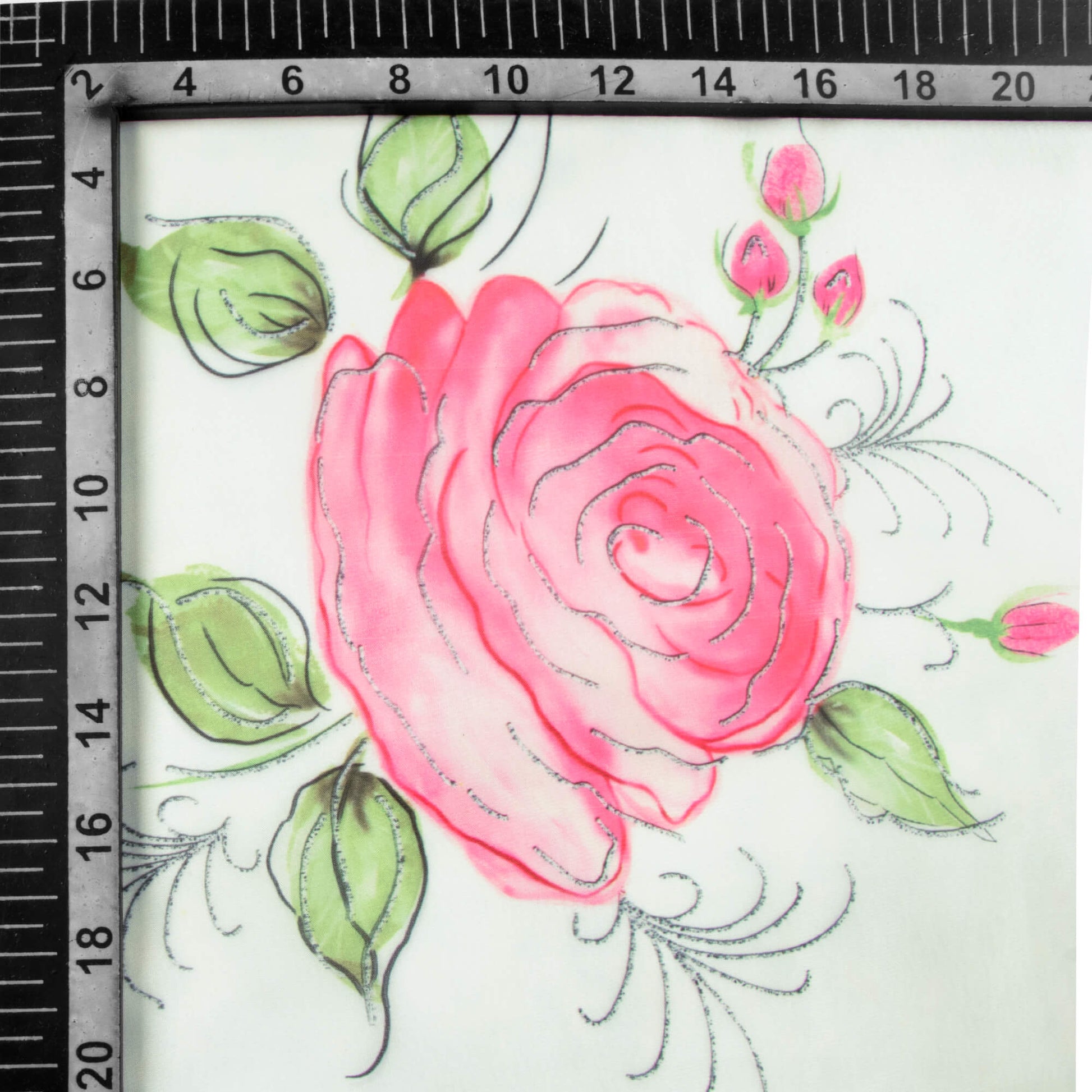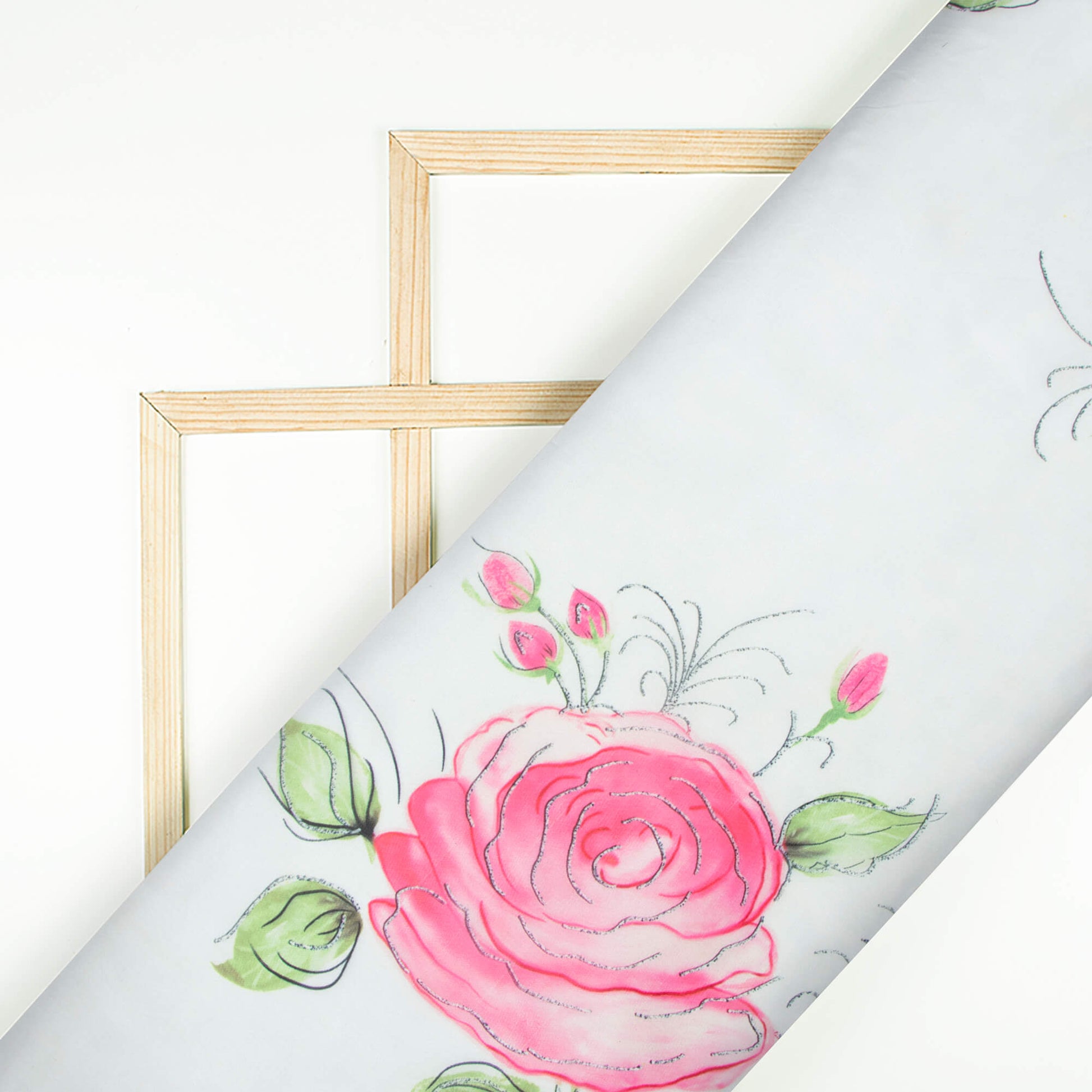 White And Punch Pink Floral Pattern Hand Paint Effect Digital Print Organza Satin Fabric