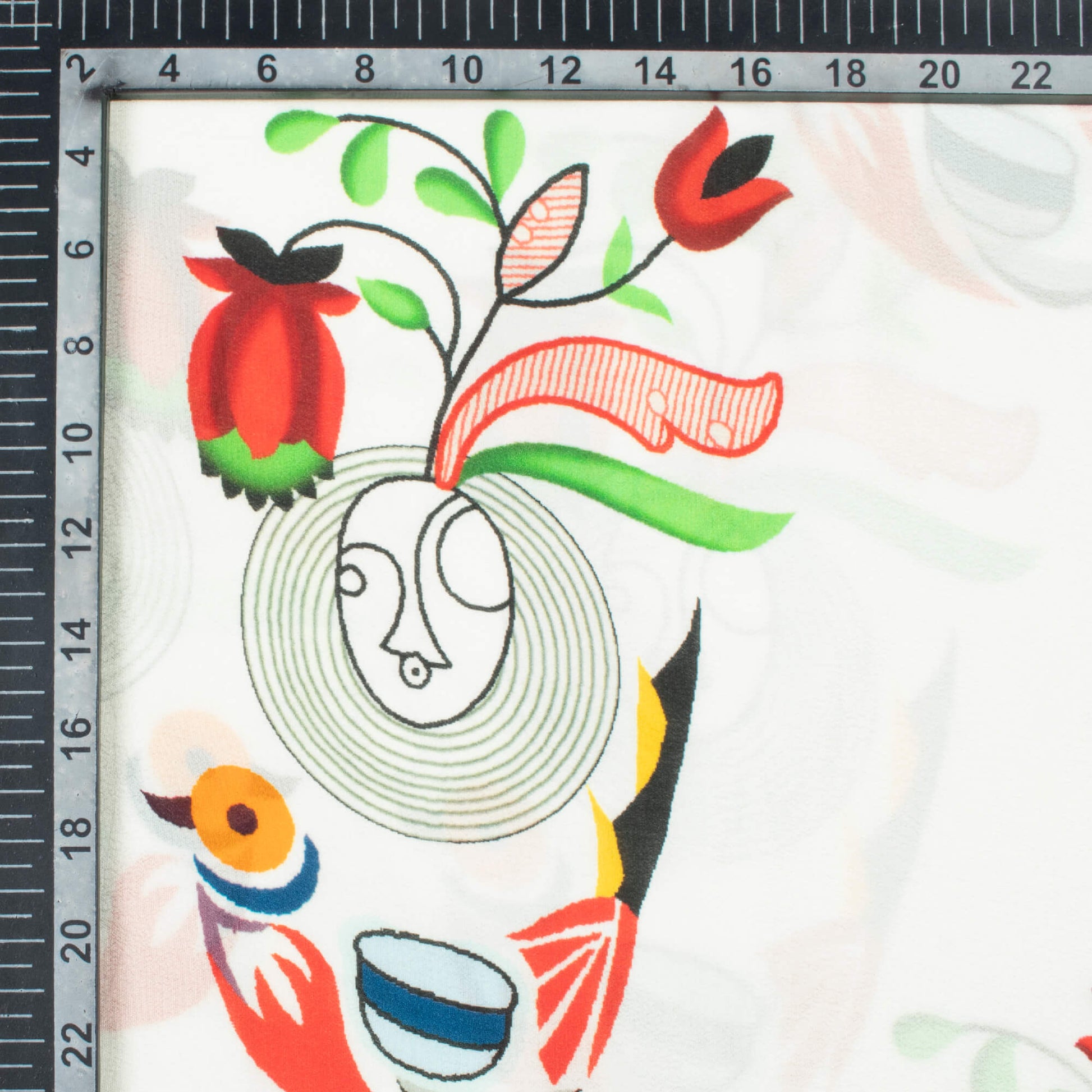 White And Red Bird Pattern Digital Print Viscose Natural Crepe Fabric