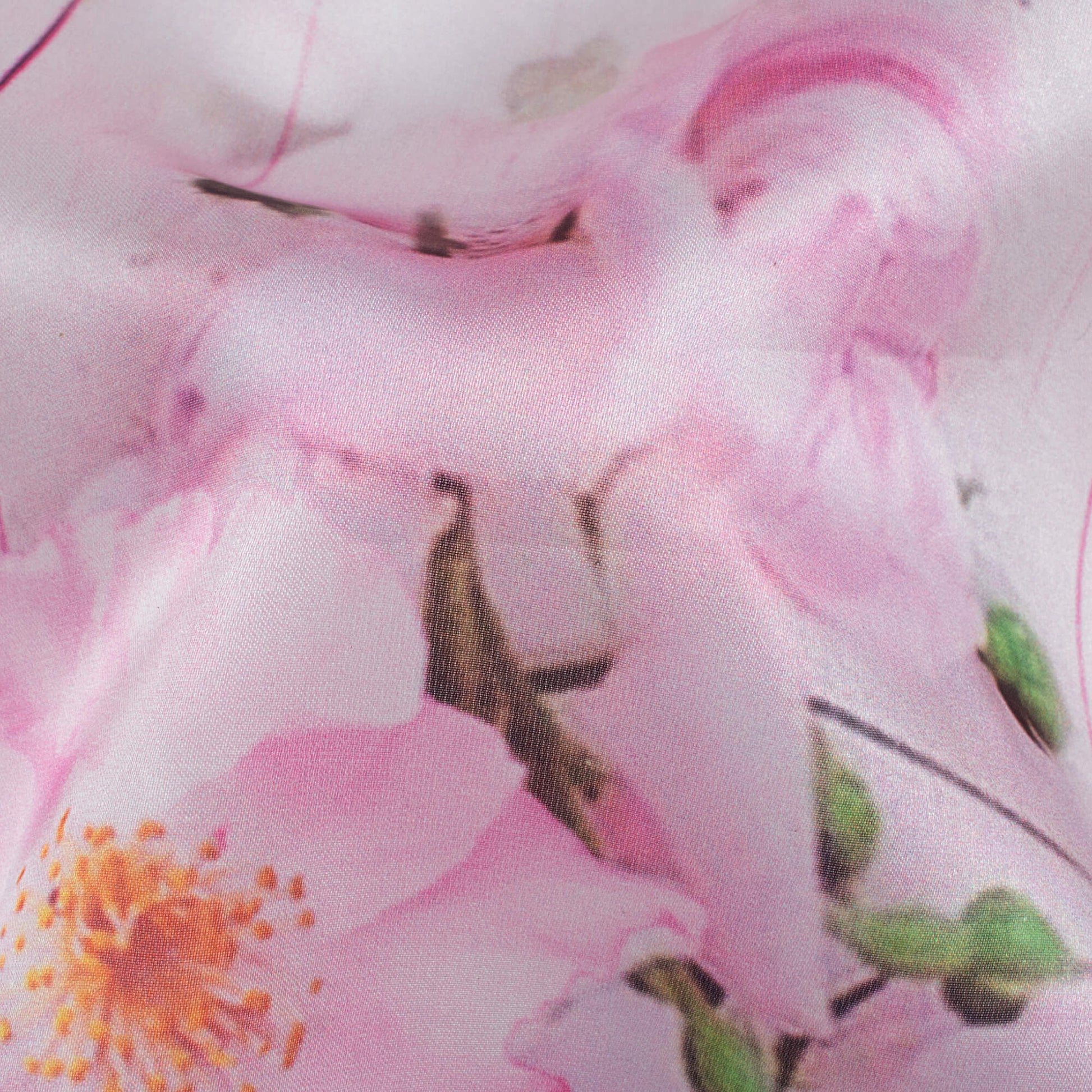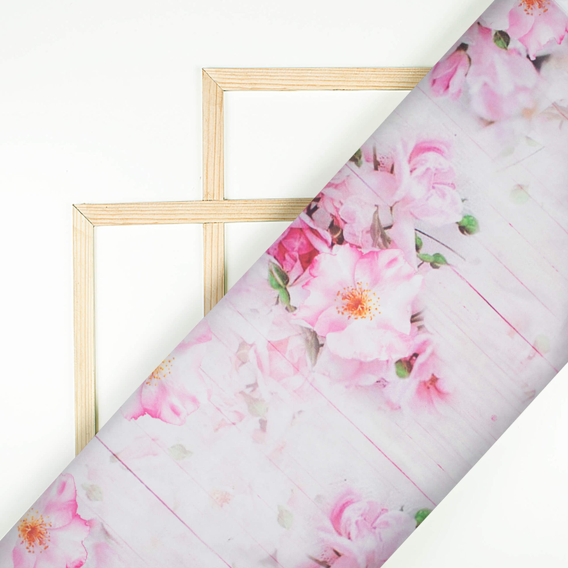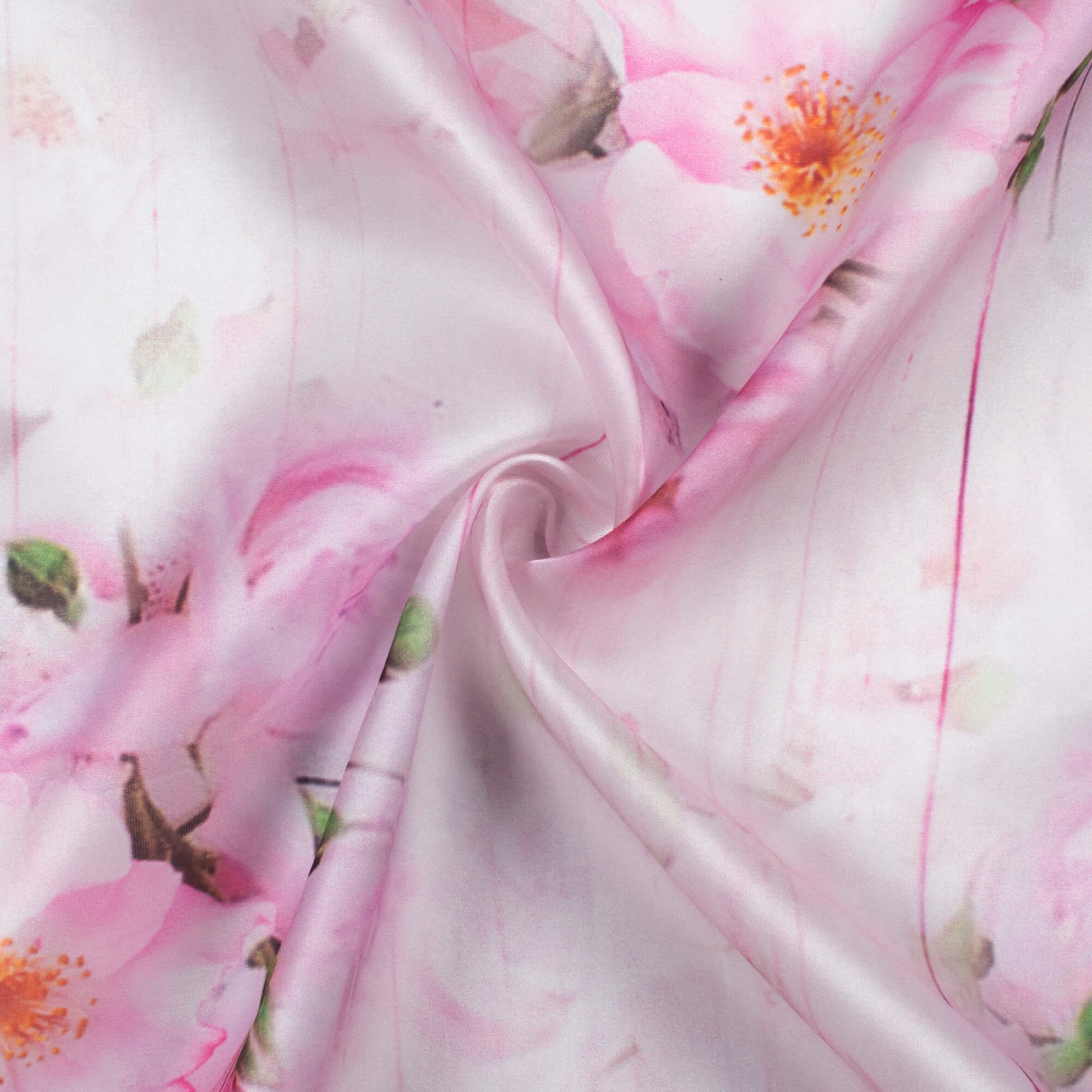 White And Rose Pink Floral Pattern Digital Print Organza Satin Fabric