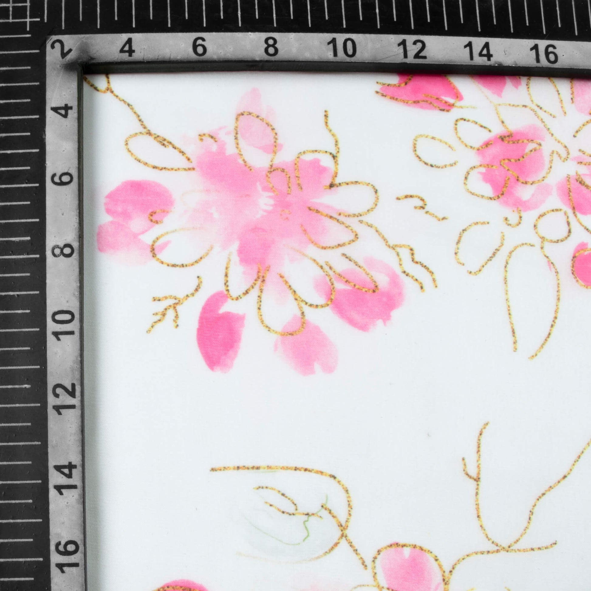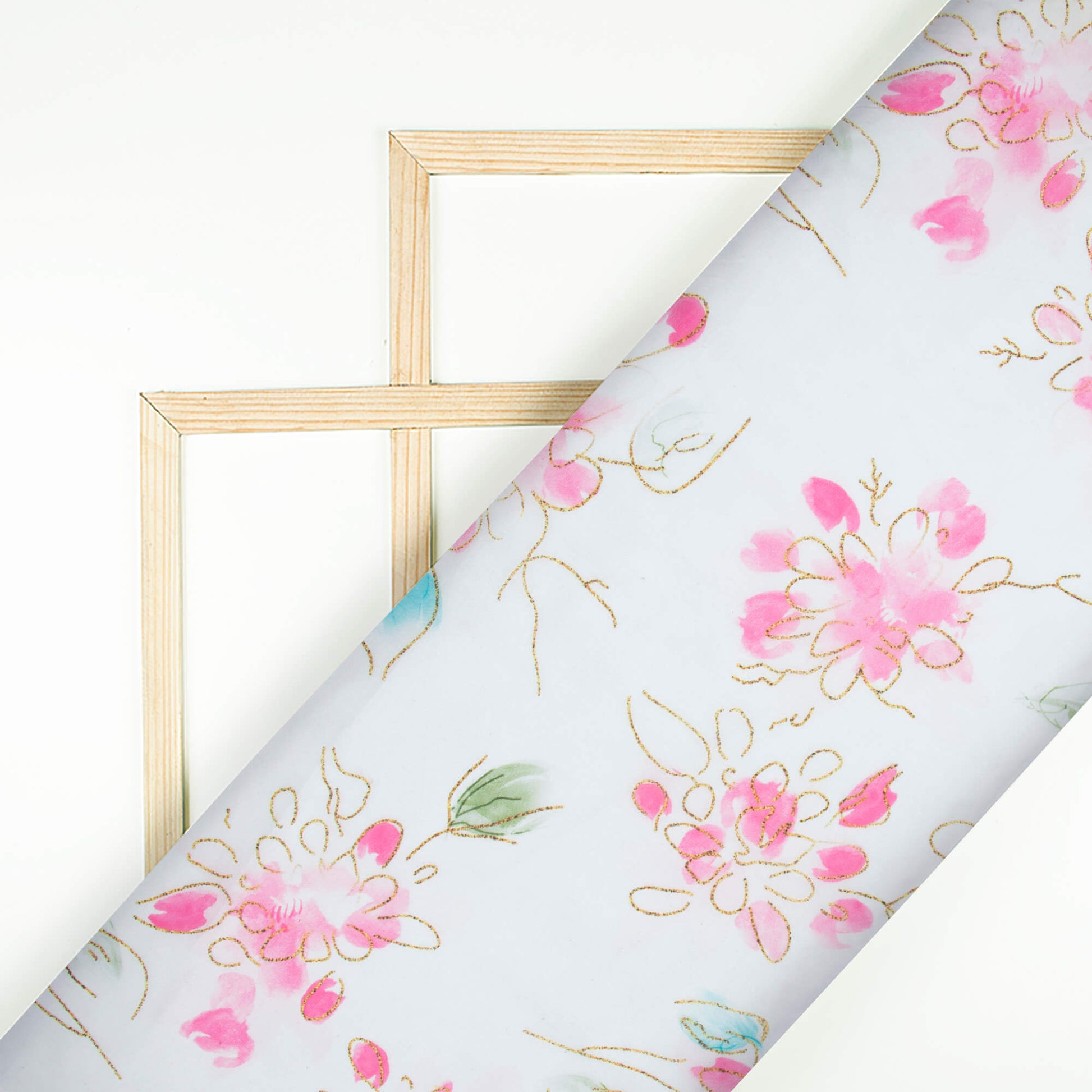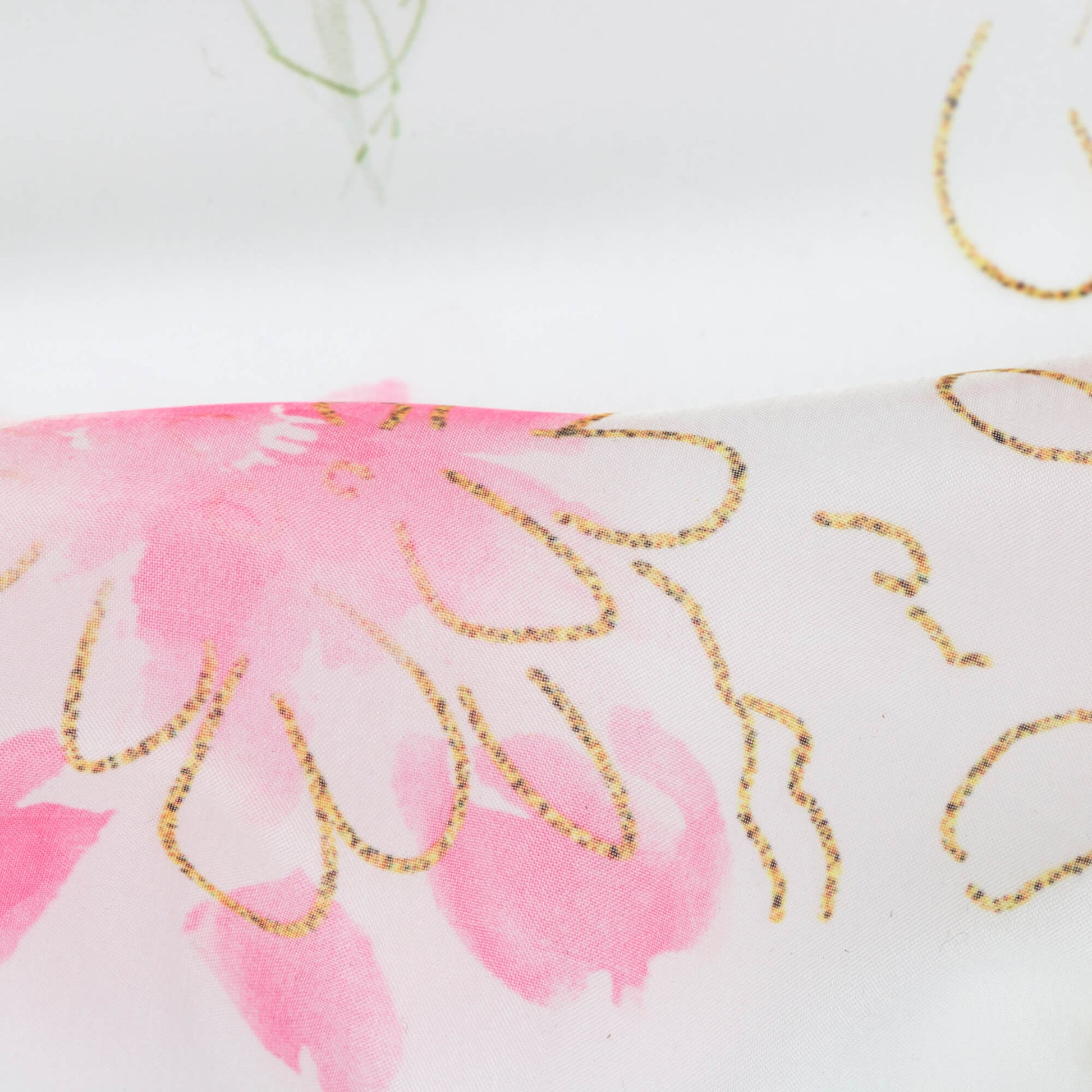 White And Rose Pink Leaf Pattern Hand Paint Effect Digital Print Organza Satin Fabric