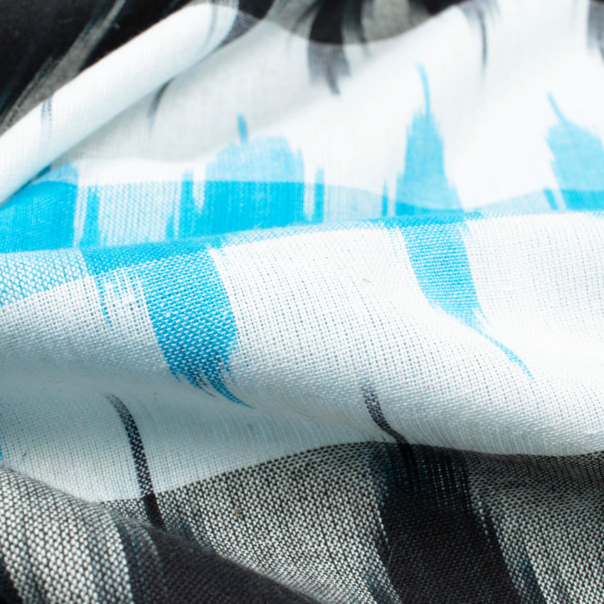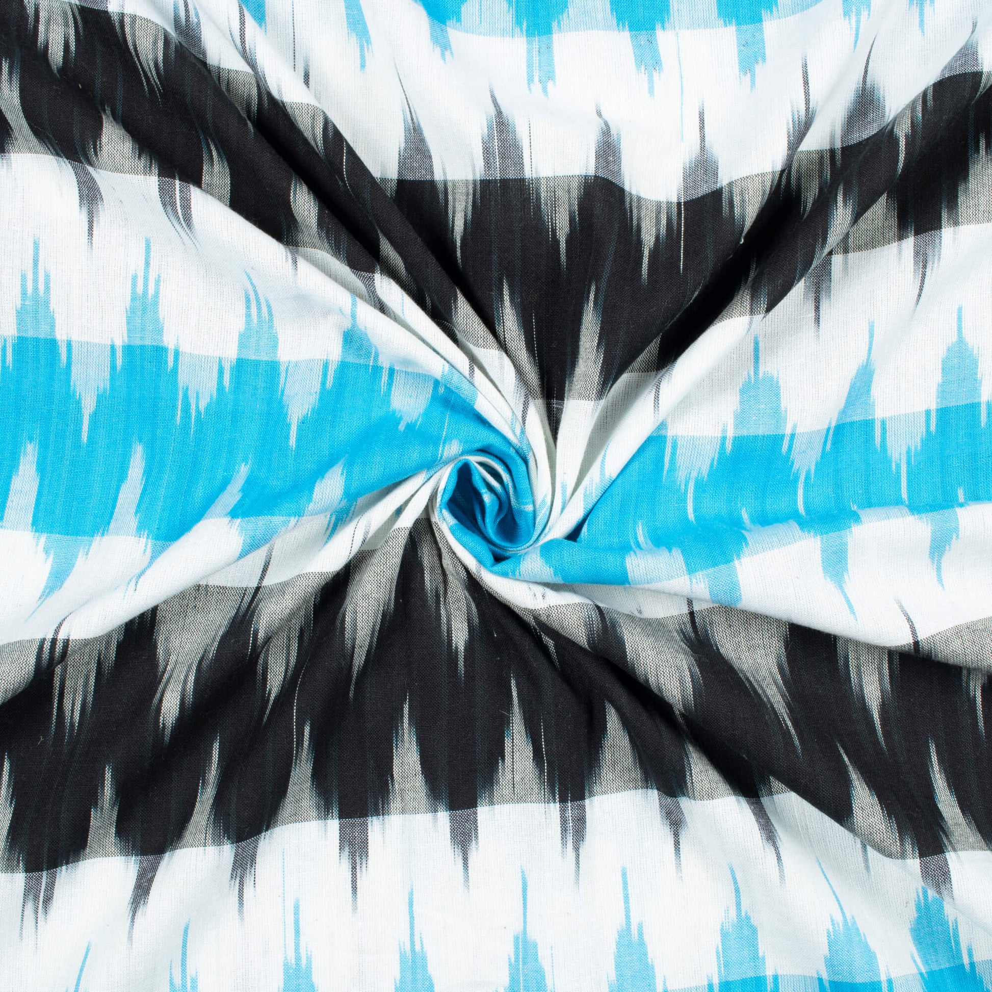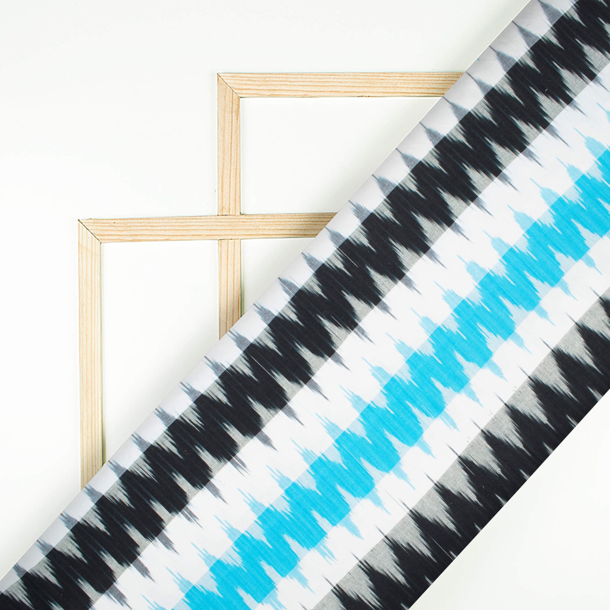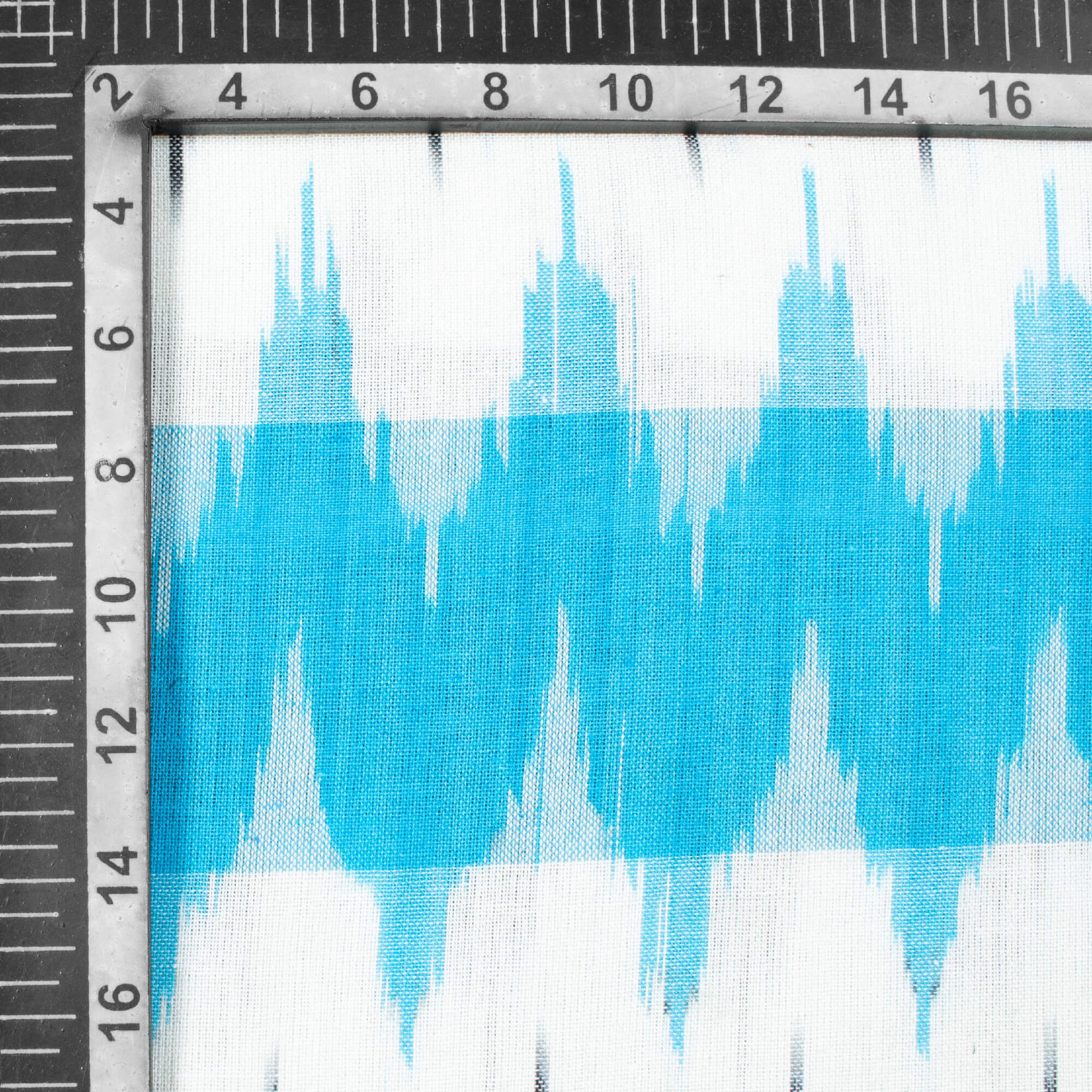 White And Sky Blue Chevron Pattern Woven Pre-Washed Cotton 3D Ikat Fabric