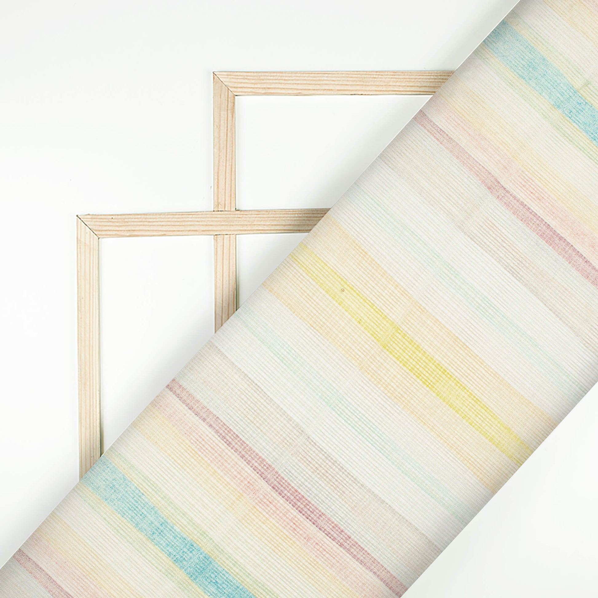 White And Smalt Blue Stripes Pattern Digital Print Kota Doria Fabric