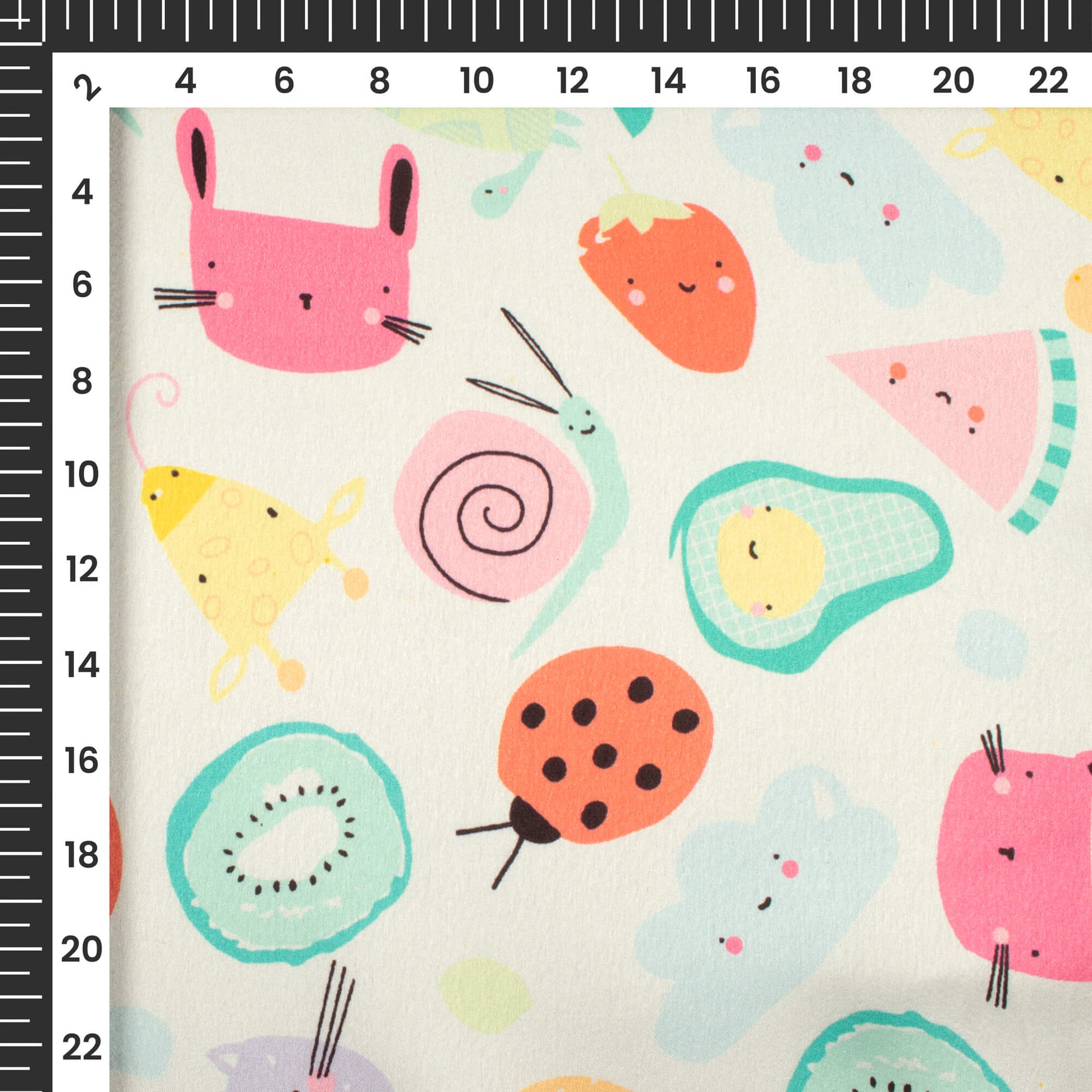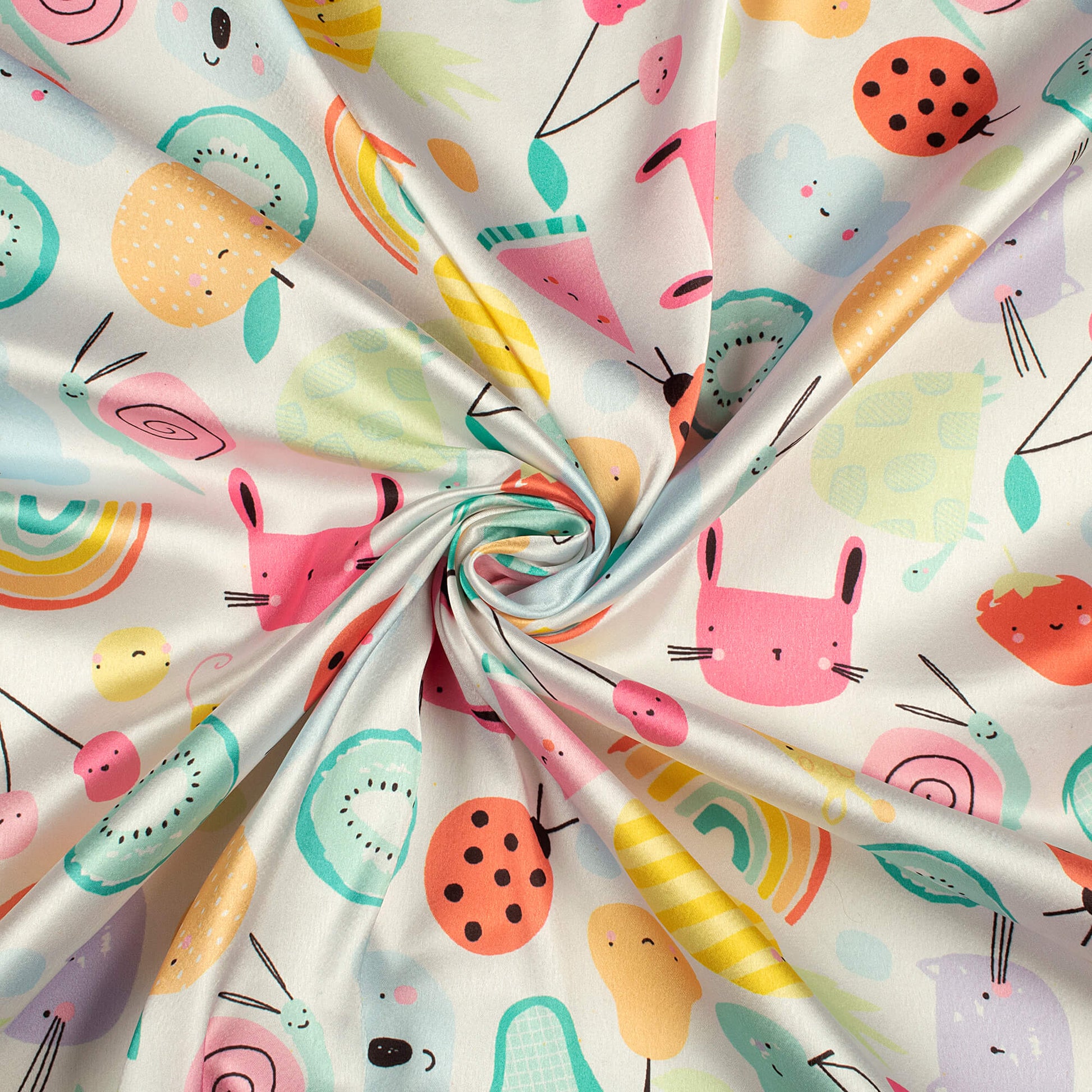 White And Yellow Fruit Digital Print Japan Satin Fabric