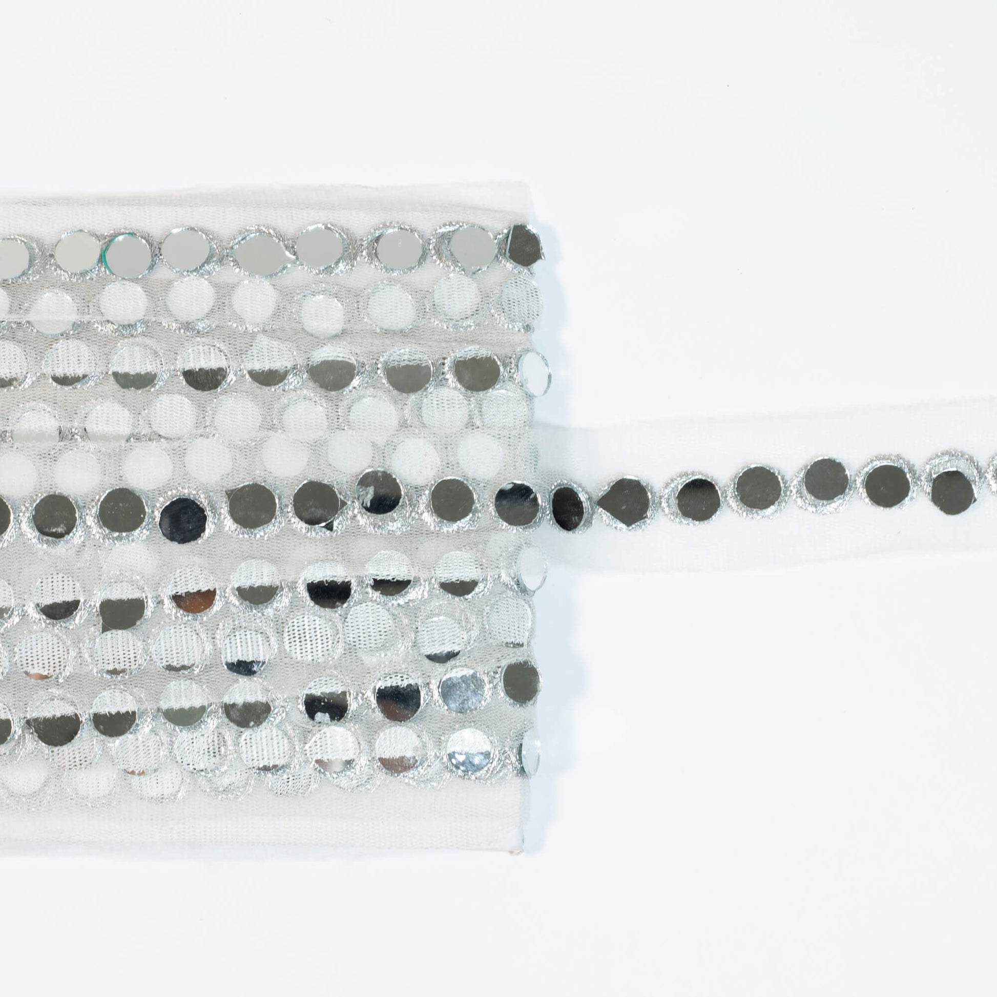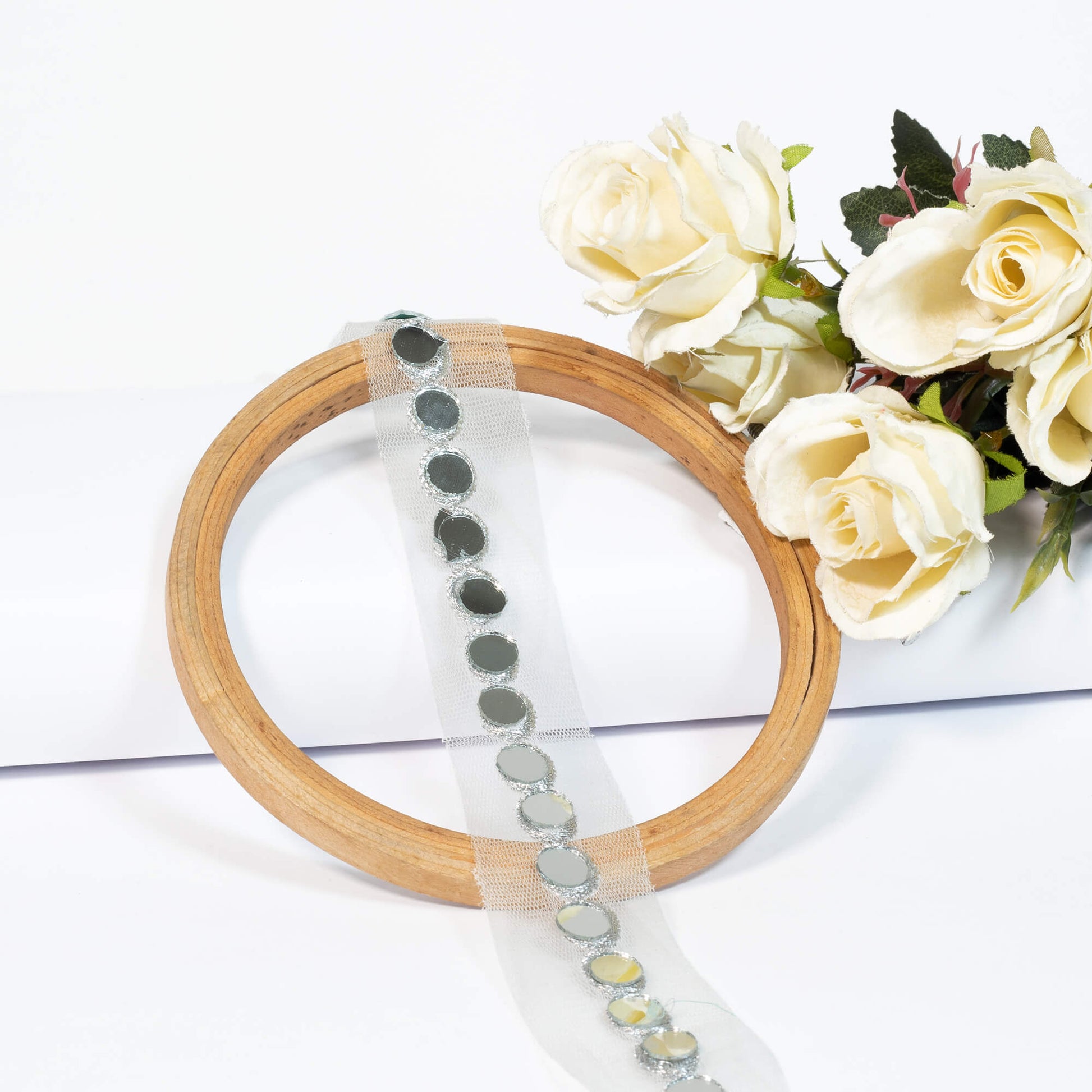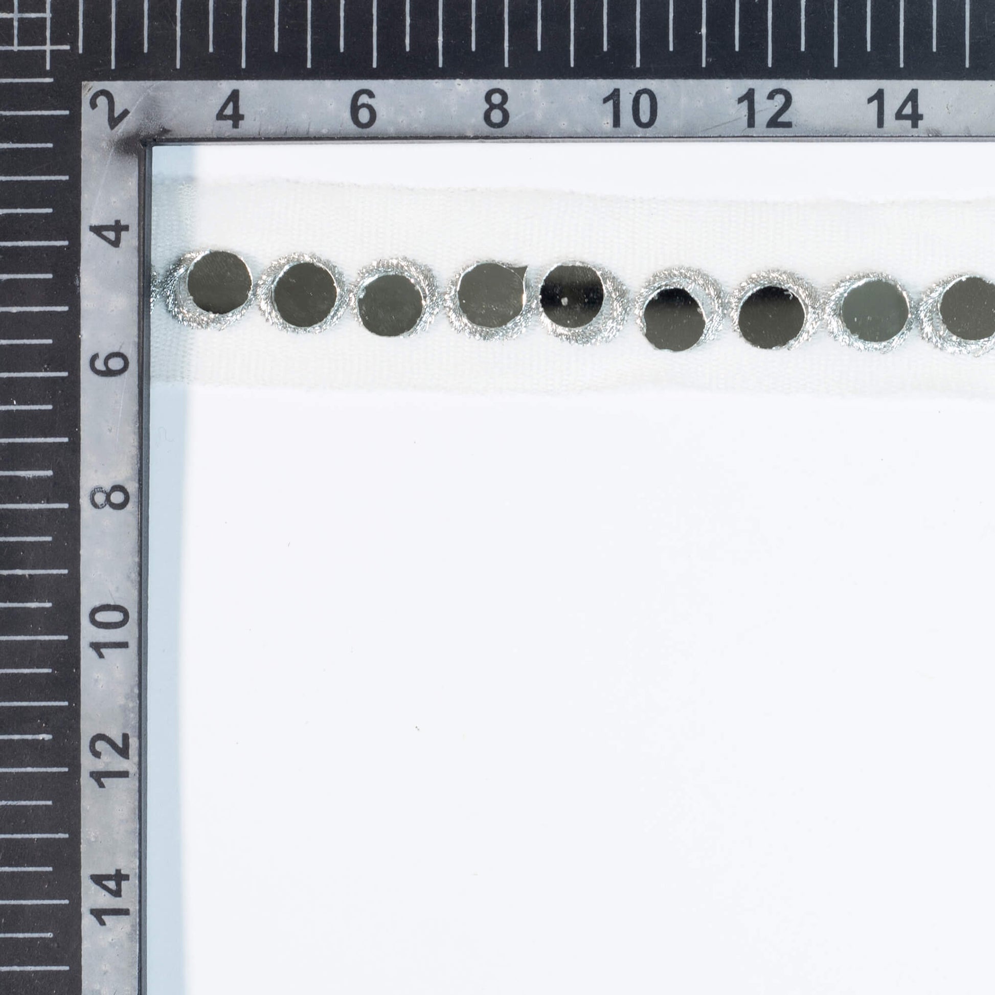 White Booti Pattern Zari Embroidery With Mirror Work Net Lace (9 Mtr)