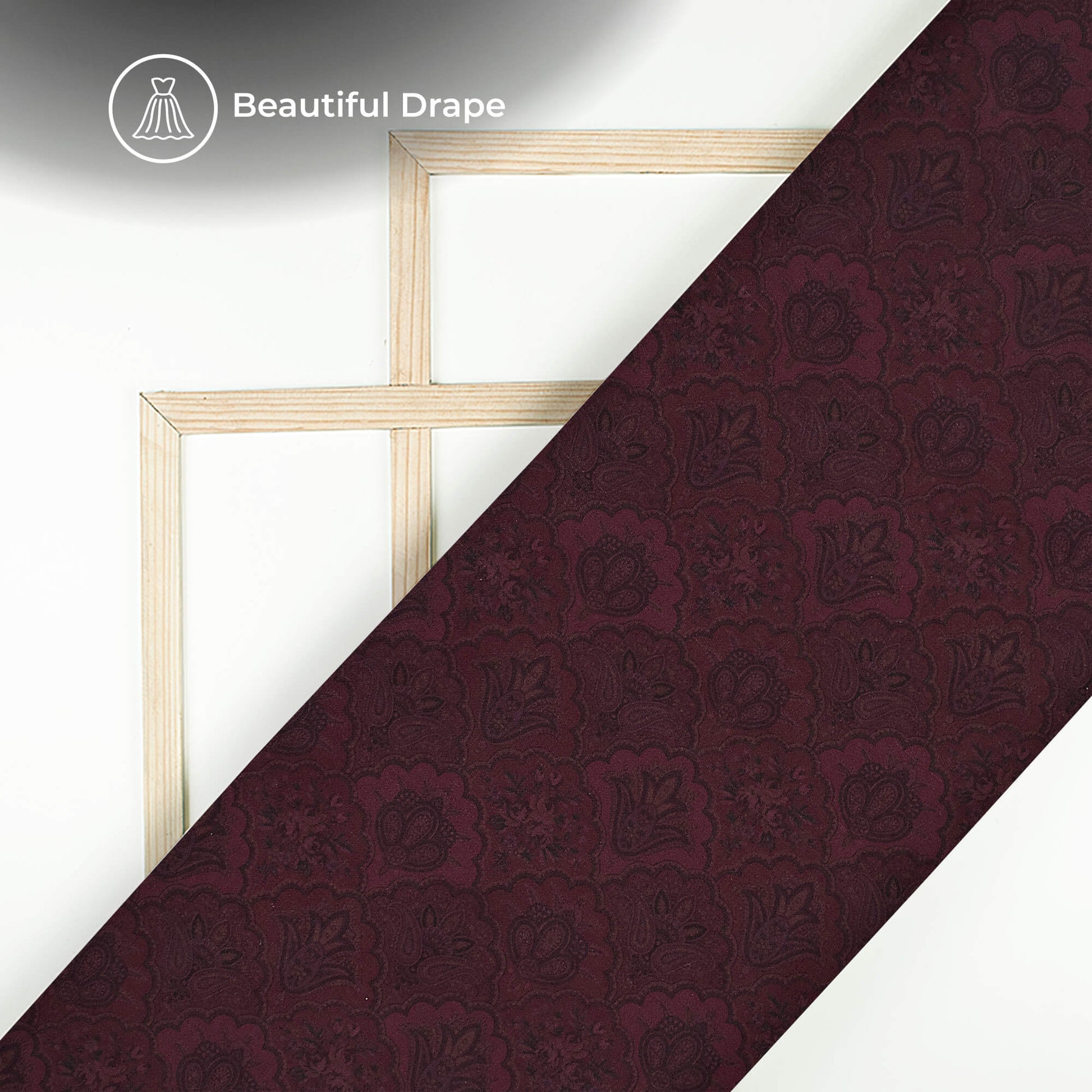 Wine Purple Ethnic Digital Print Imported Satin Fabric