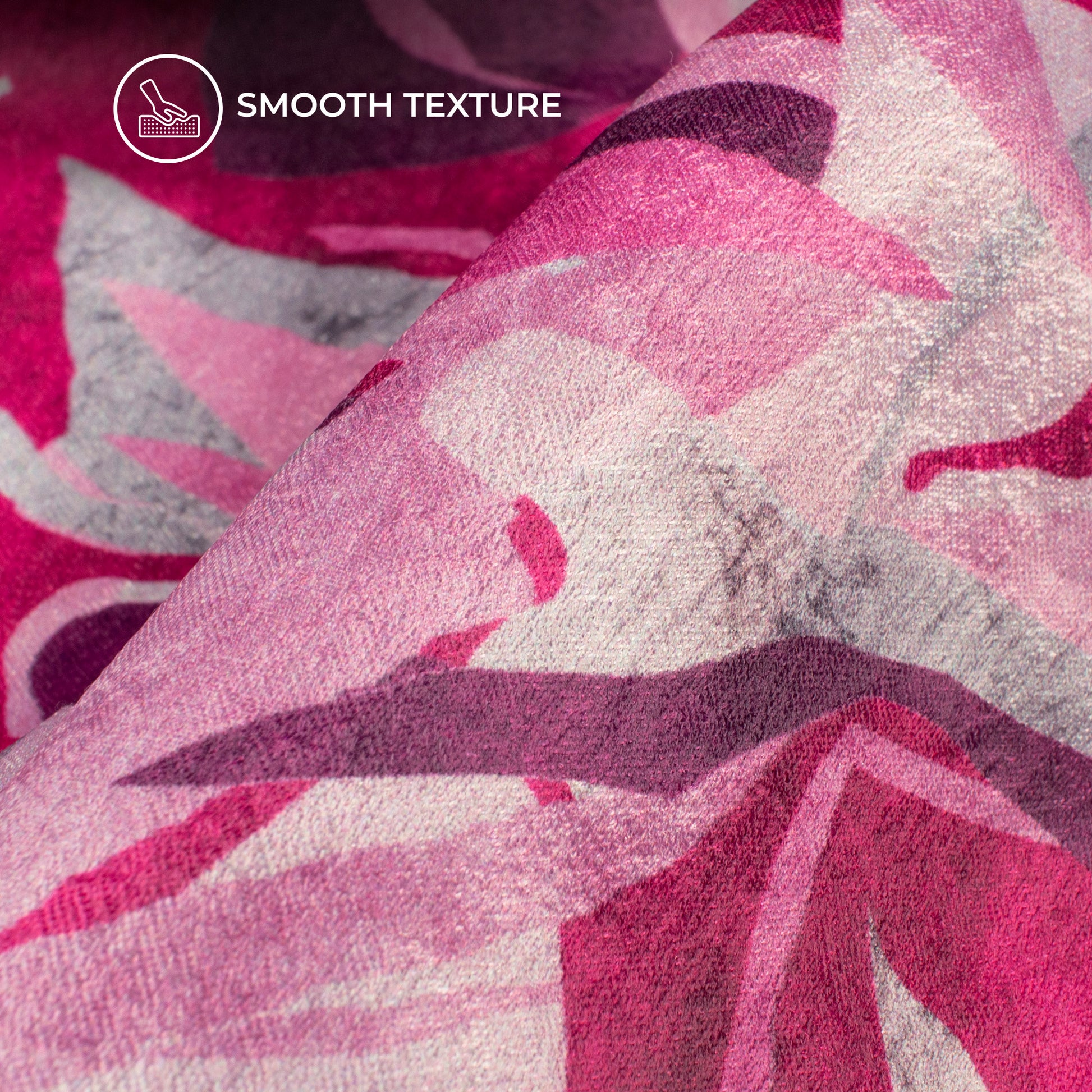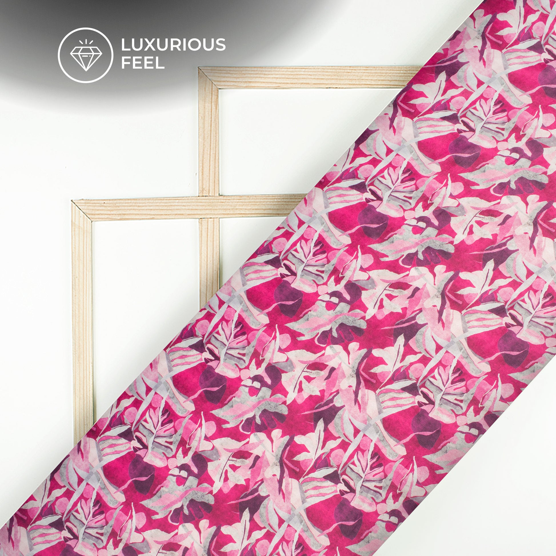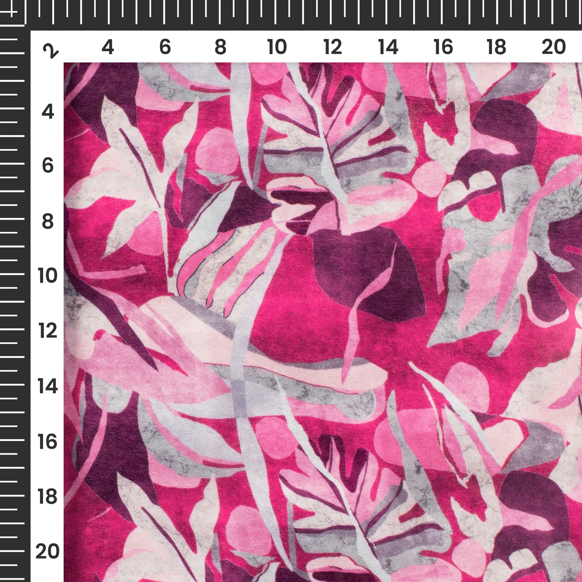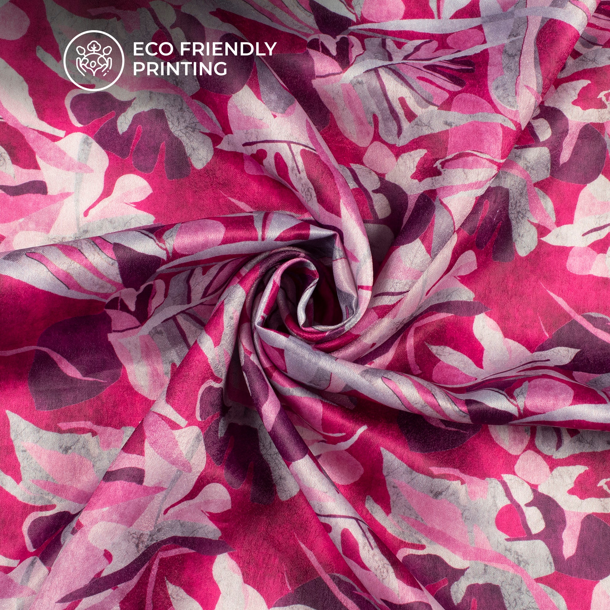 Wine Purple Leaf Digital Print Lush Satin Fabric