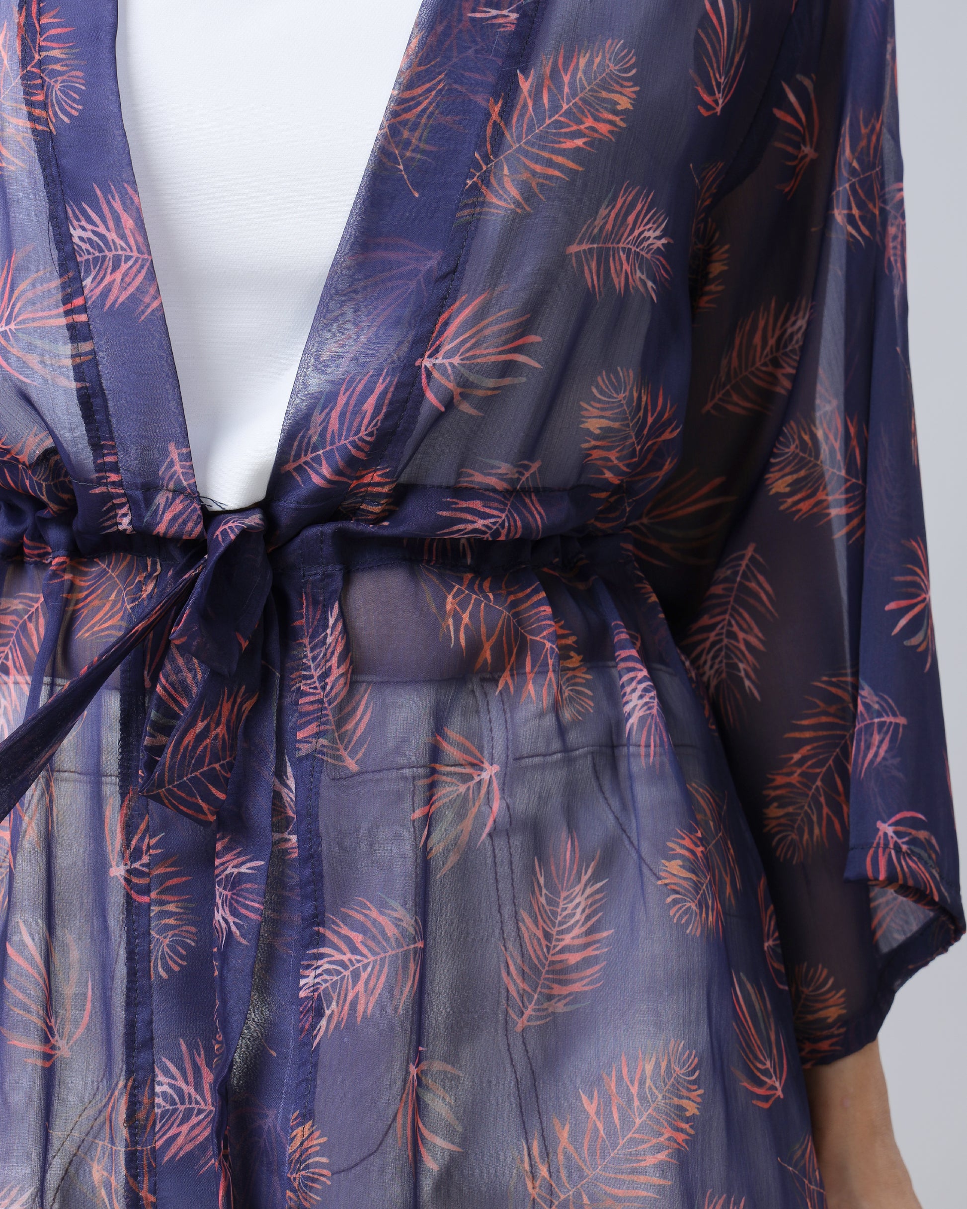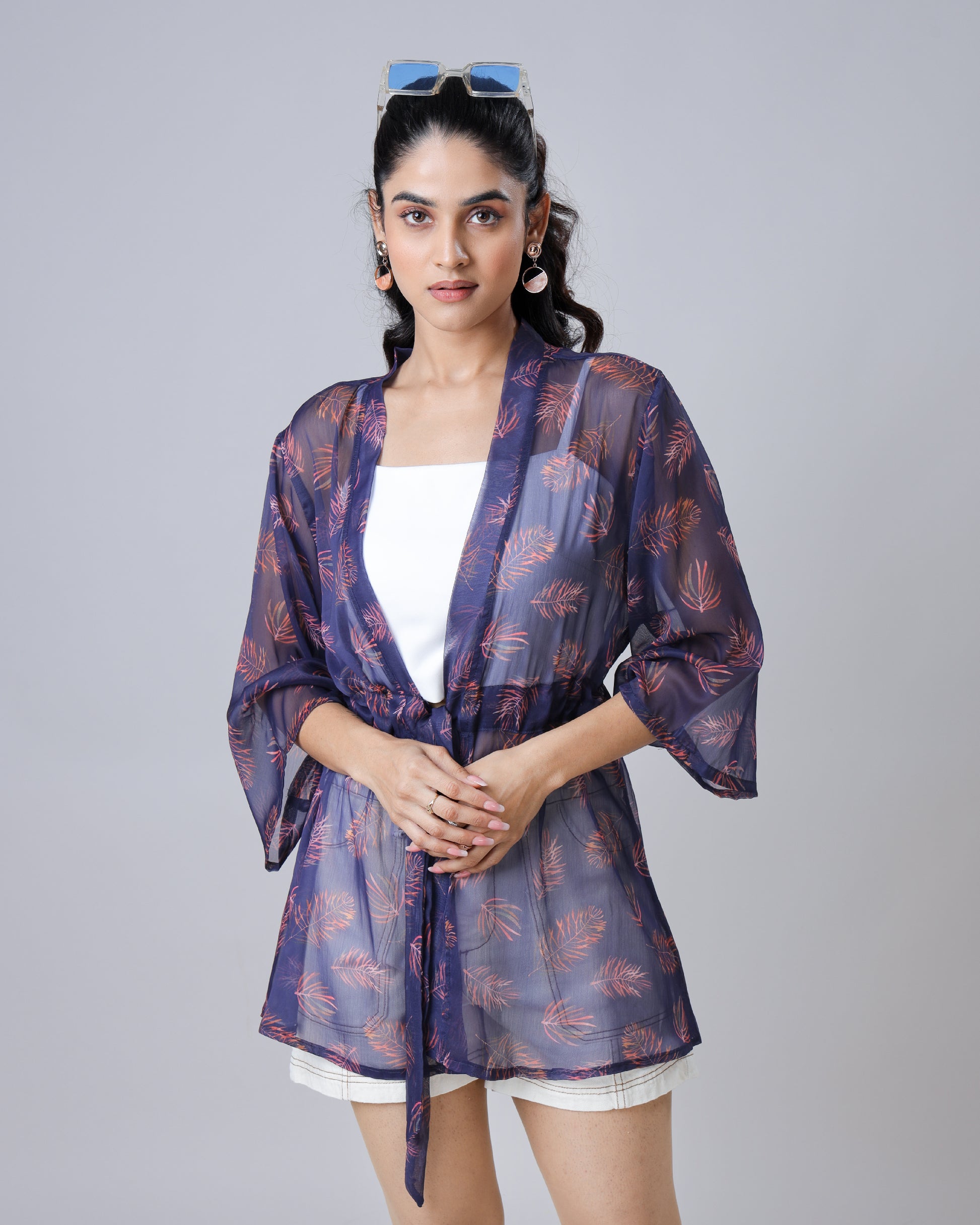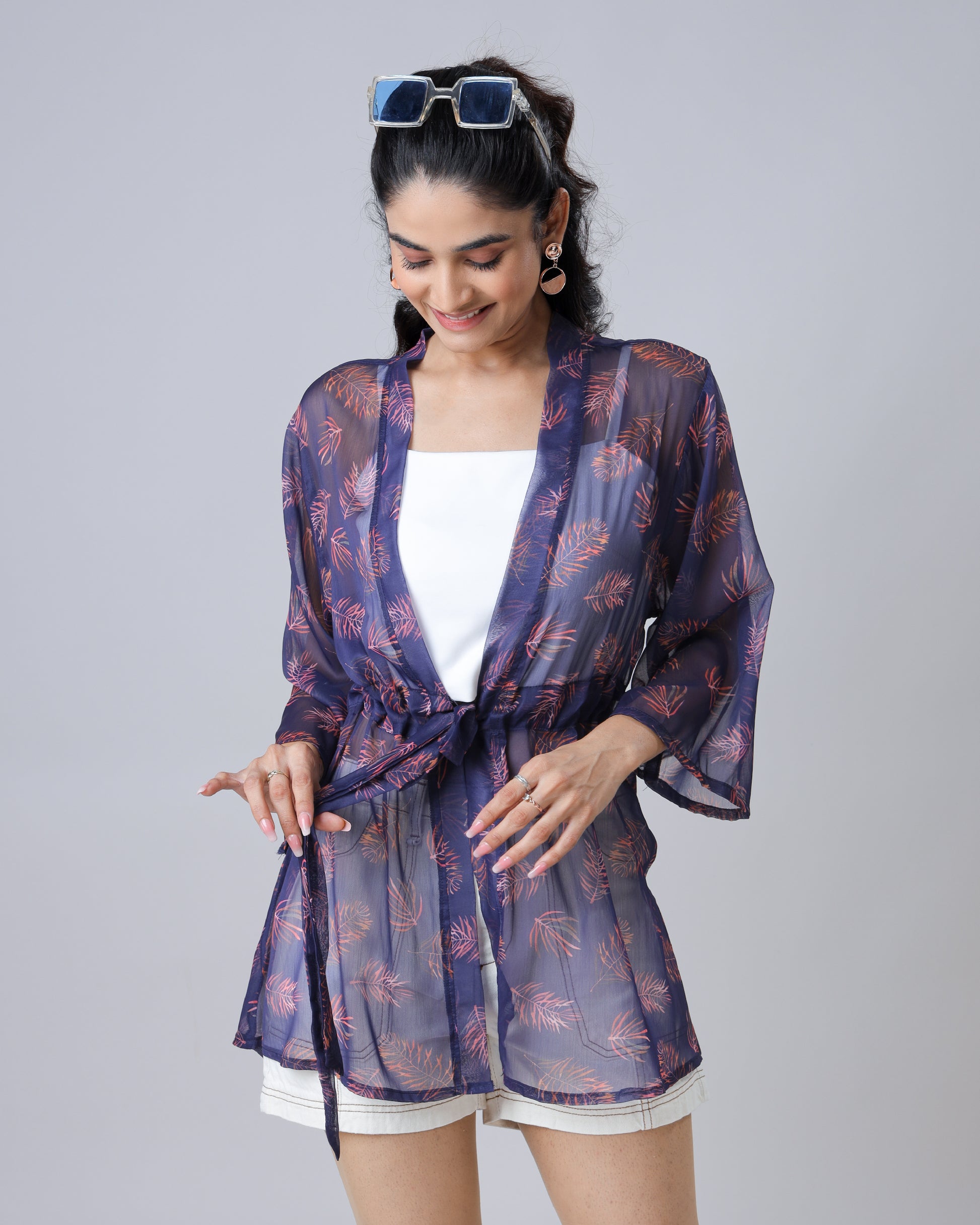 Transform your look with this elegant chiffon shrug. The lightweight, flowing fabric drapes beautifully, while the distinctive prints add a touch of personality. The adjustable tie-up waist allows you to cinch it for a defined silhouette, making it ideal for layering over virtually any garment.
