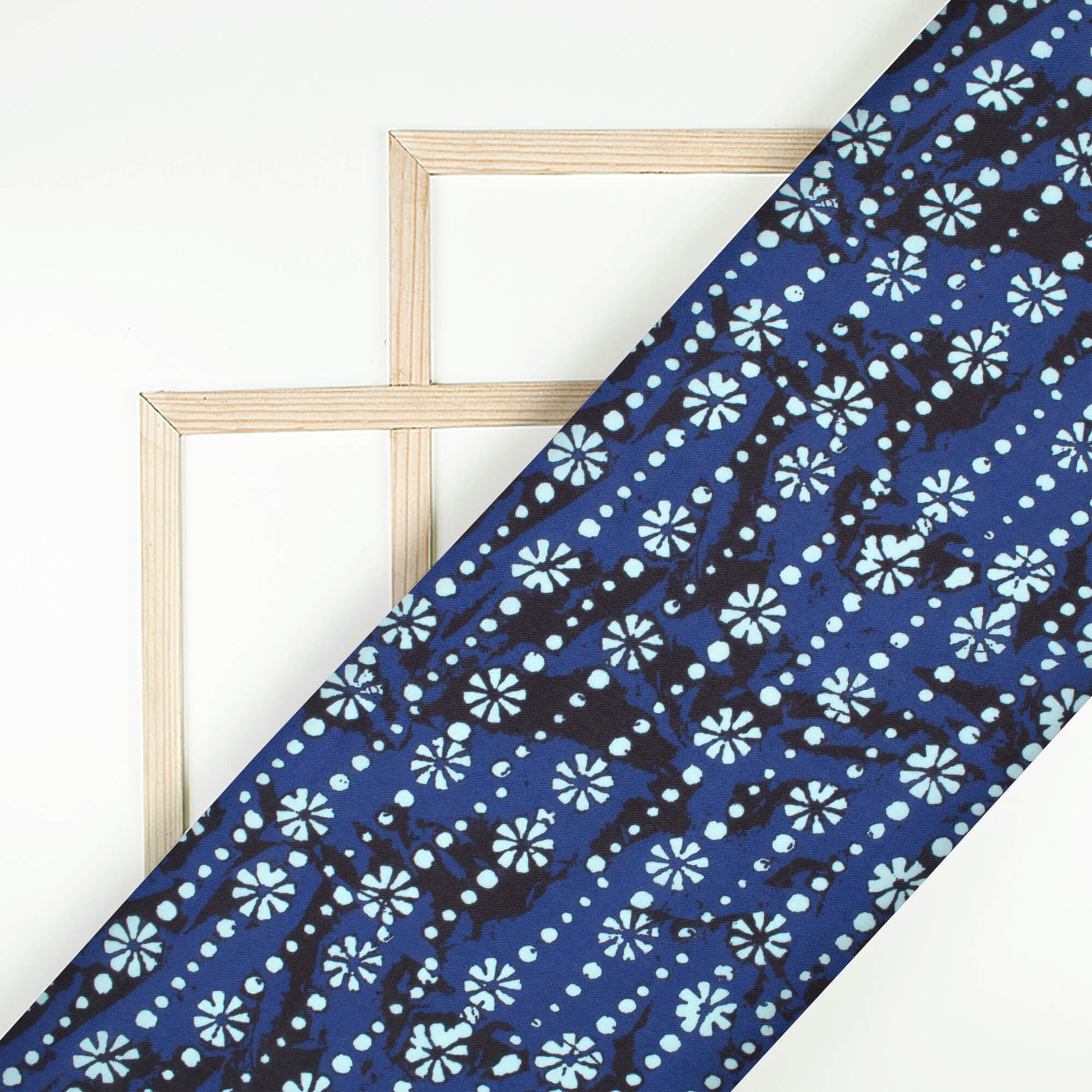 Yale Blue And Powder Blue Floral Pattern Digital Print Rayon Fabric