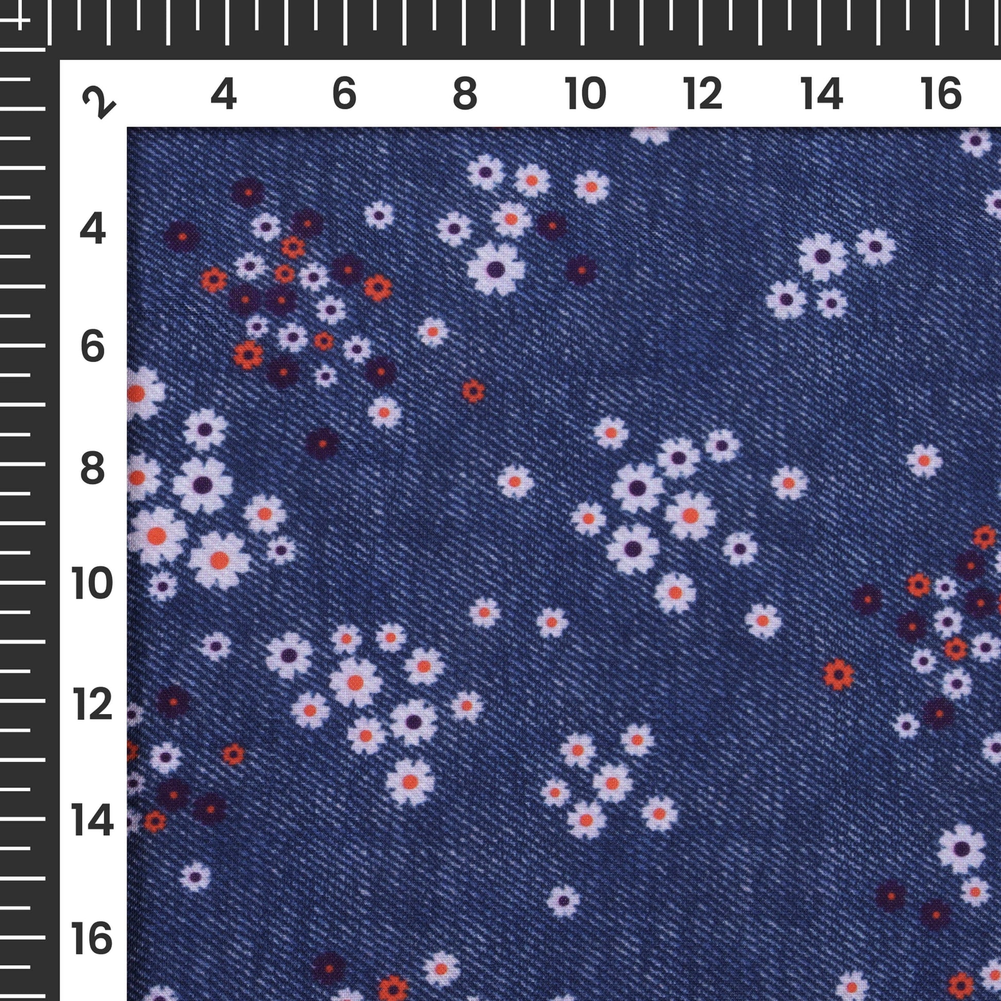 Yale Blue And Red Deniim Pattern Digital Print Rayon Fabric