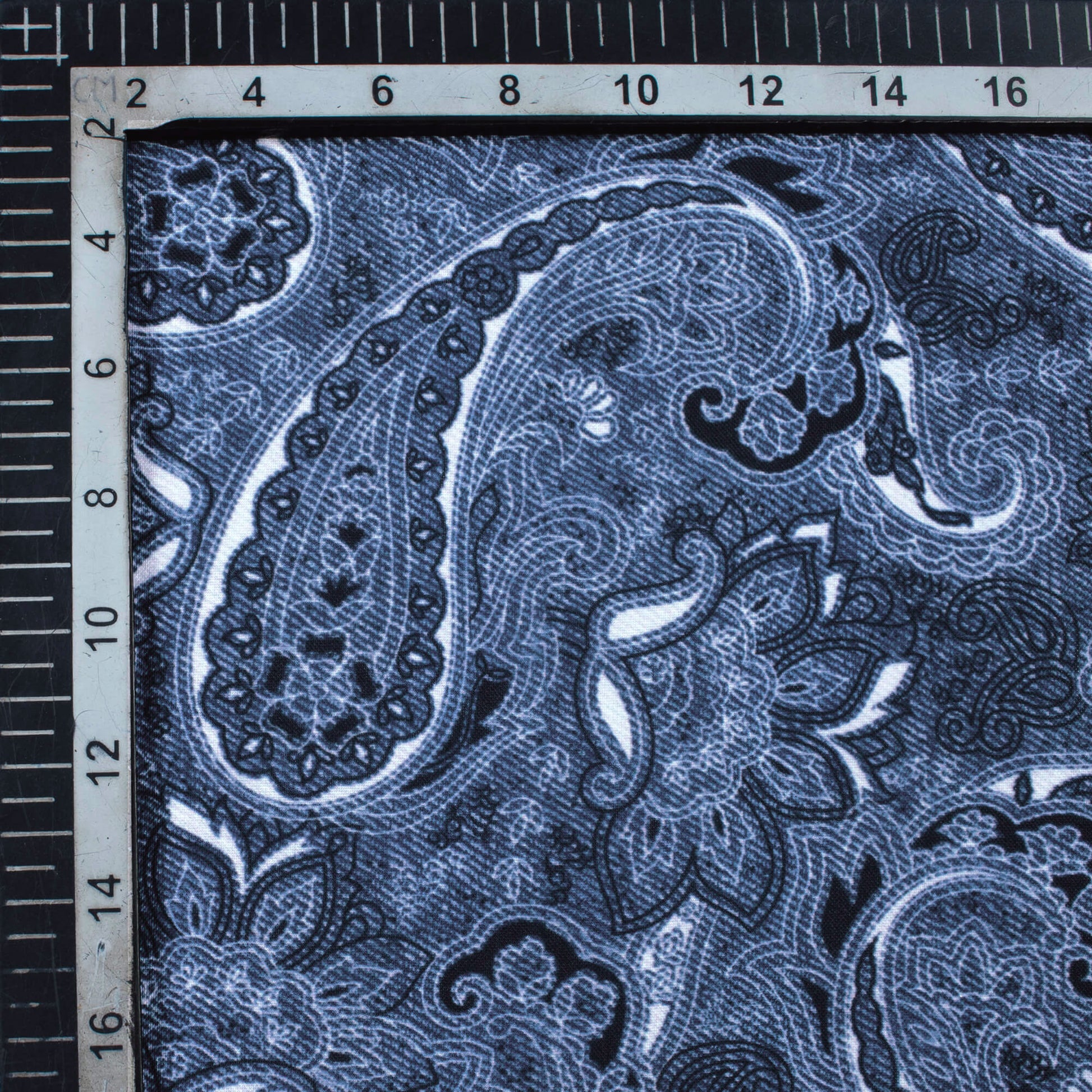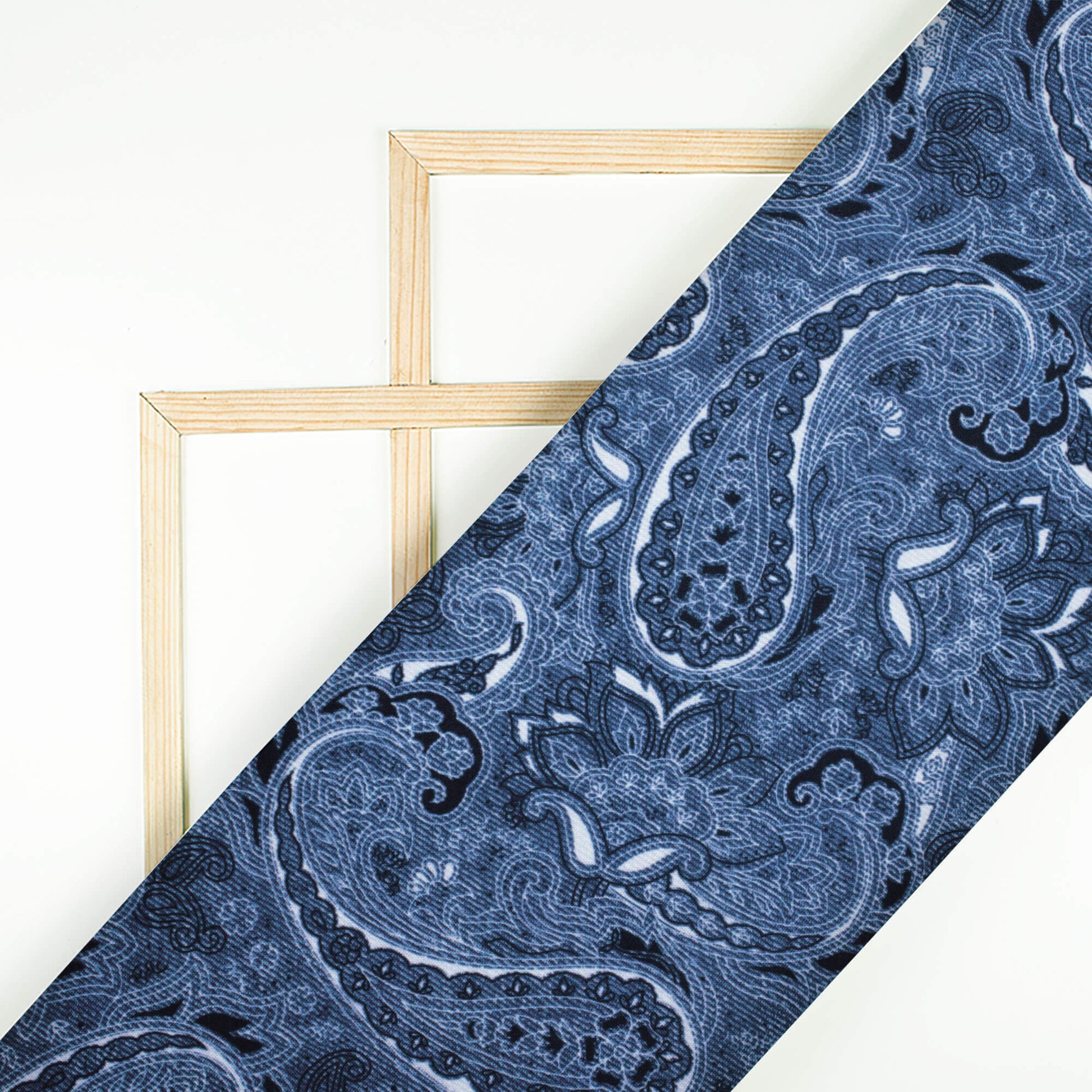 Yale Blue And Snow White Deniim Pattern Digital Print Rayon Fabric