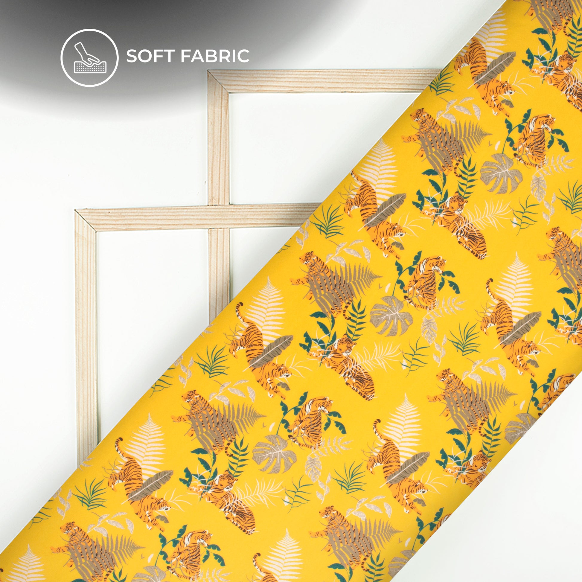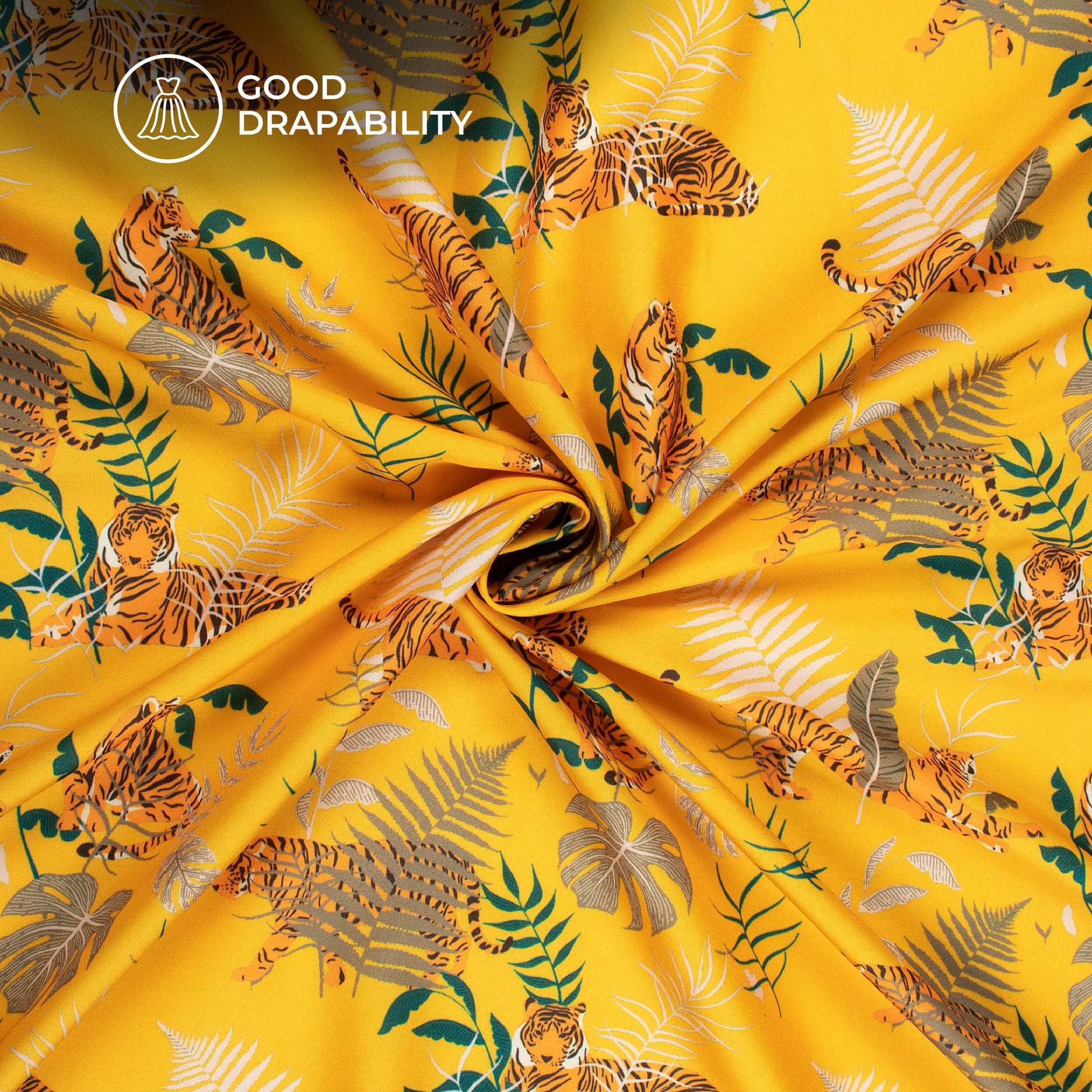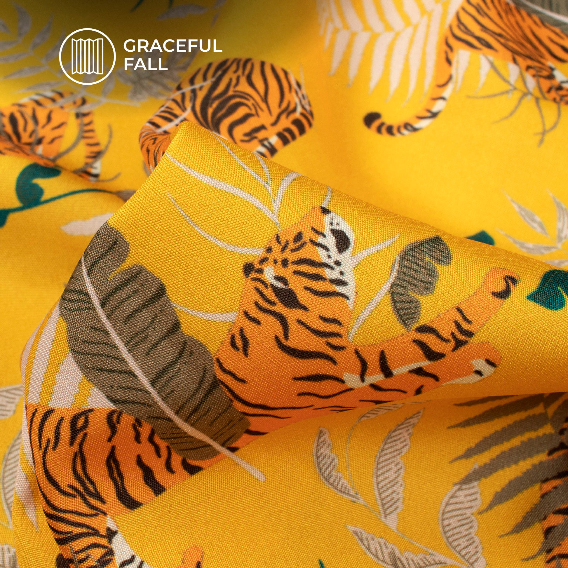 Yellow And Orange Tiger Digital Print Butter Crepe Fabric