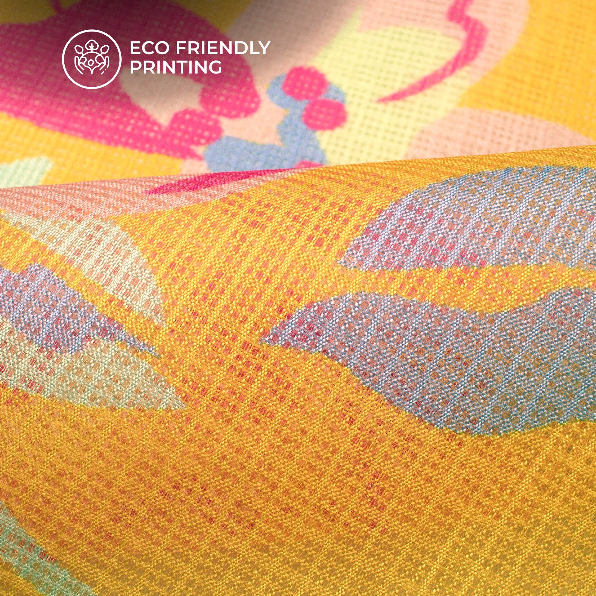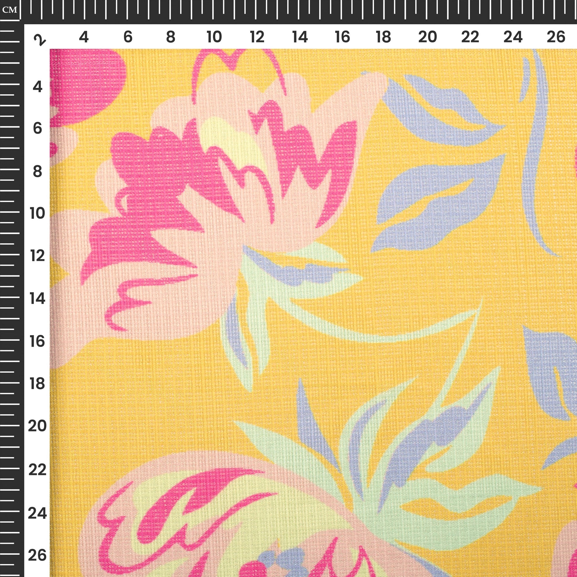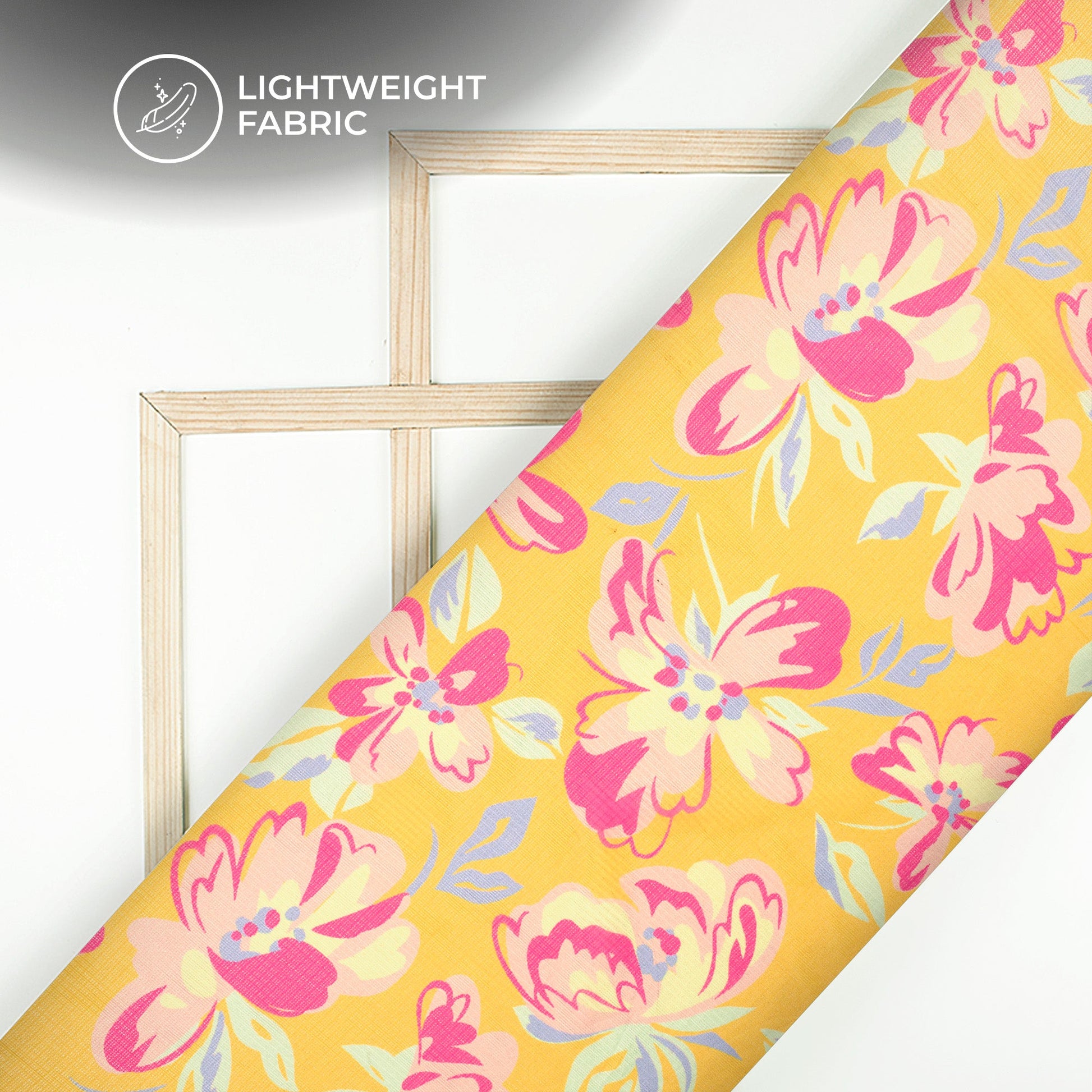 Yellow Catchy Floral Digital Print Kota Doria Fabric