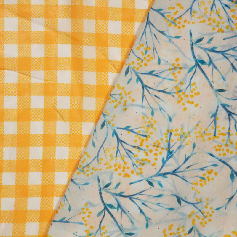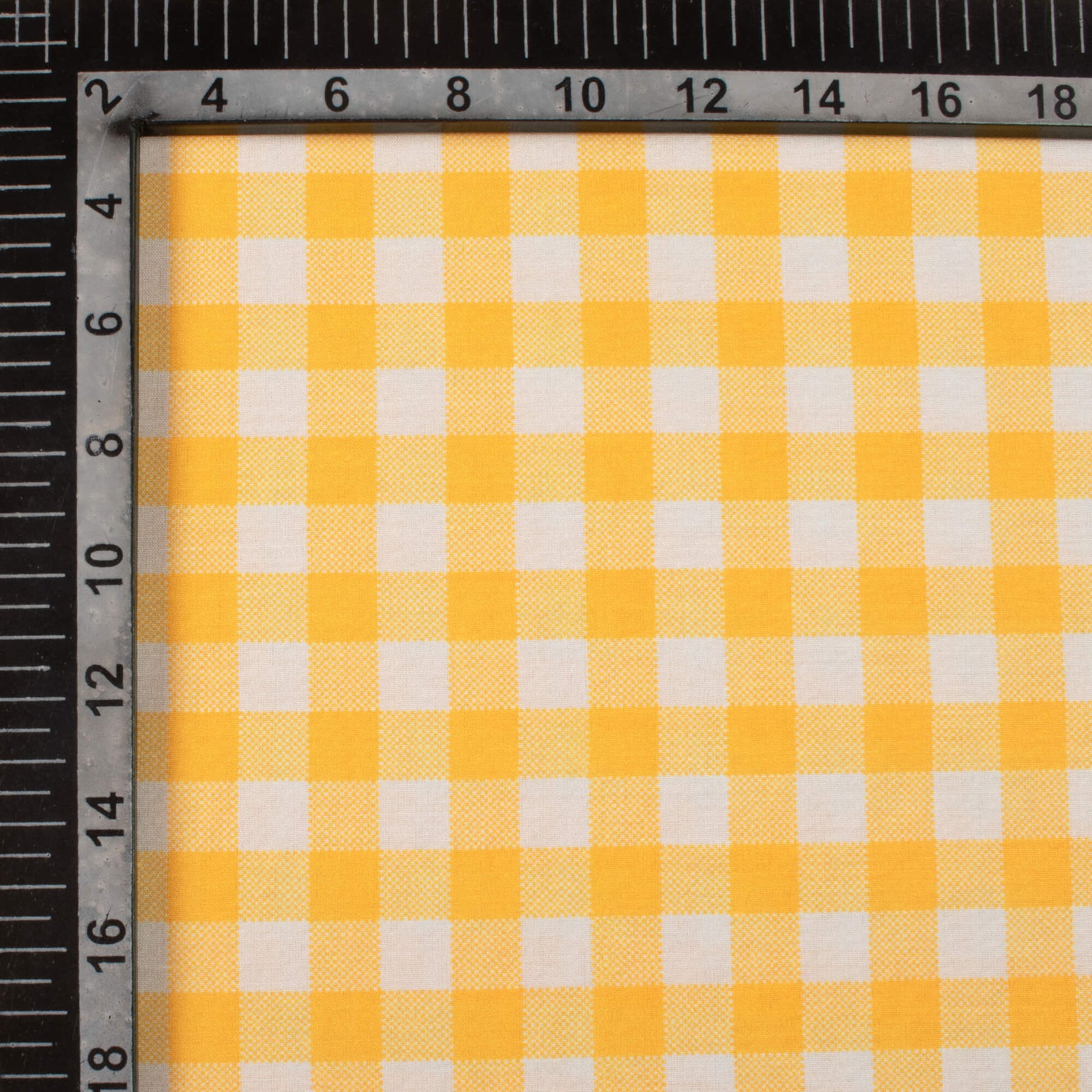 Yellow Checks Pattern Digital Print Muslin Fabric