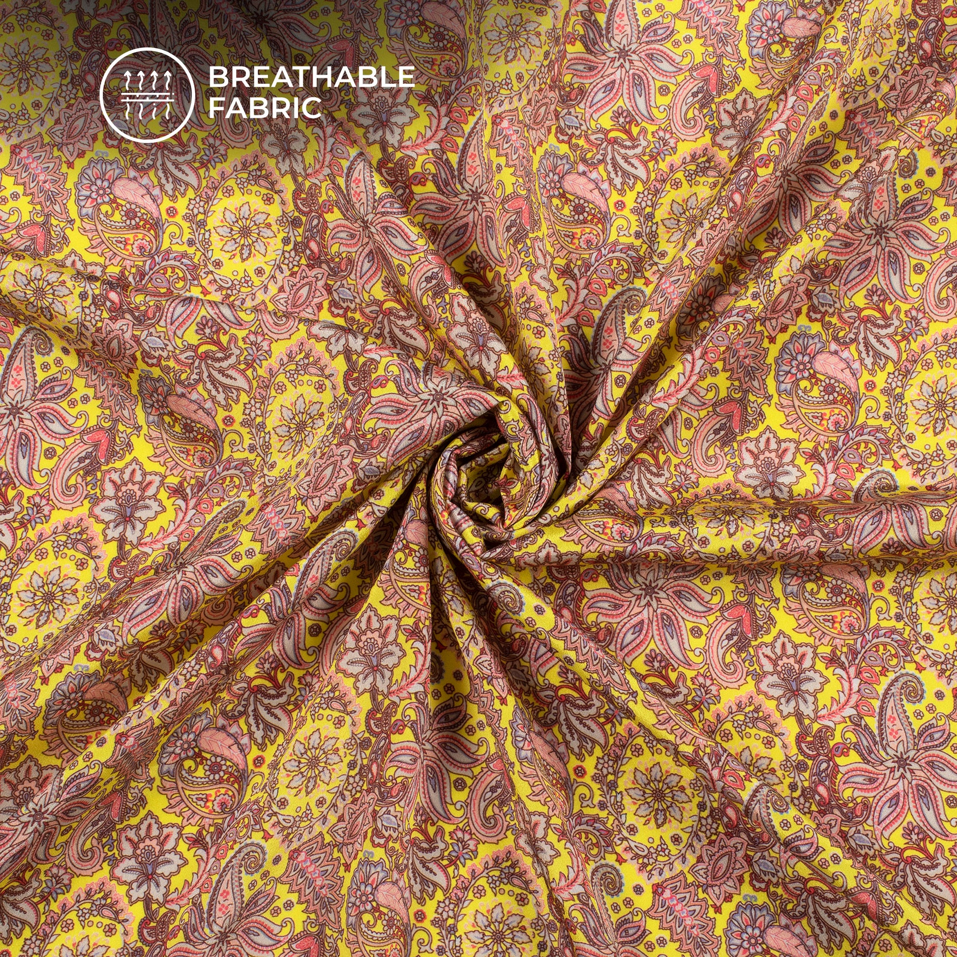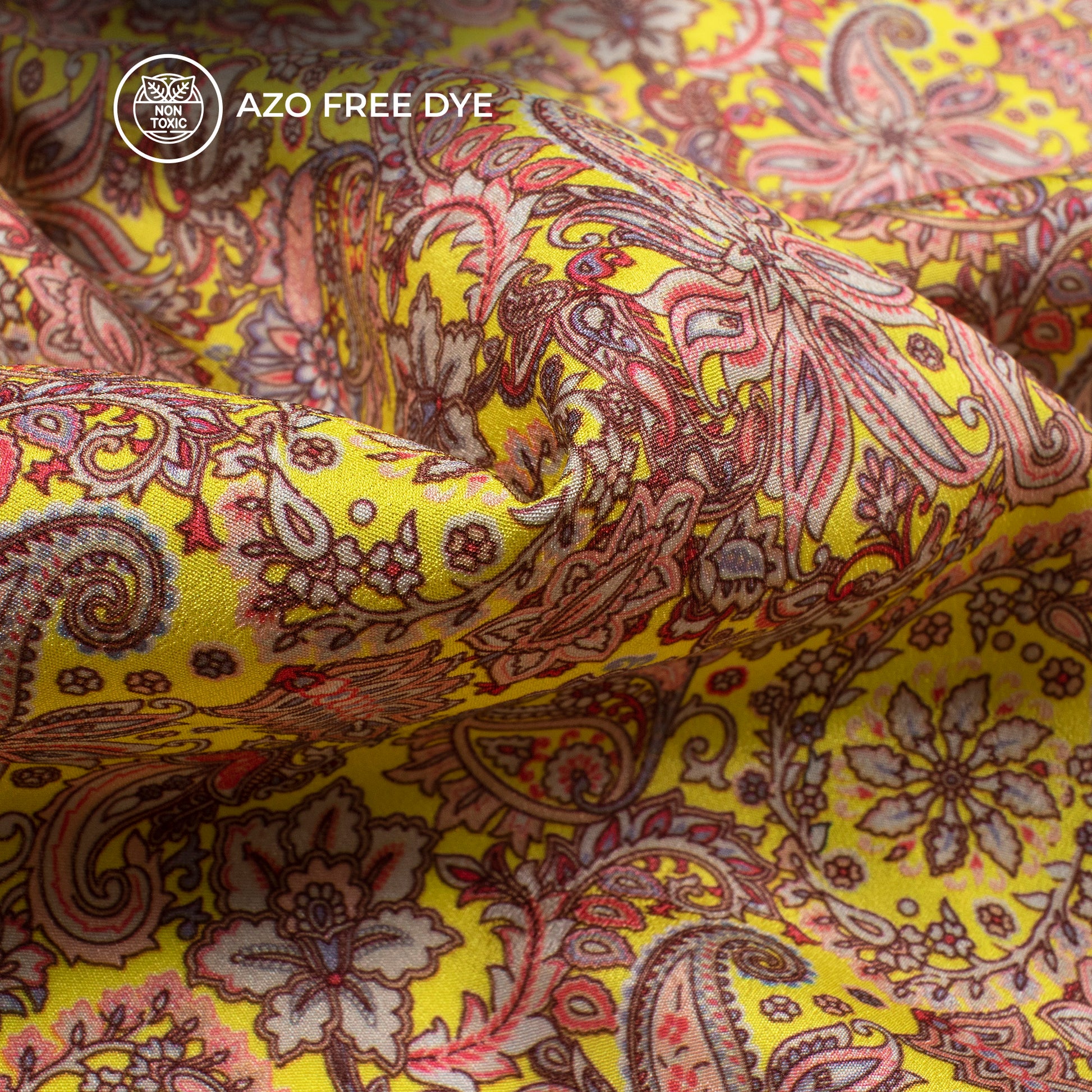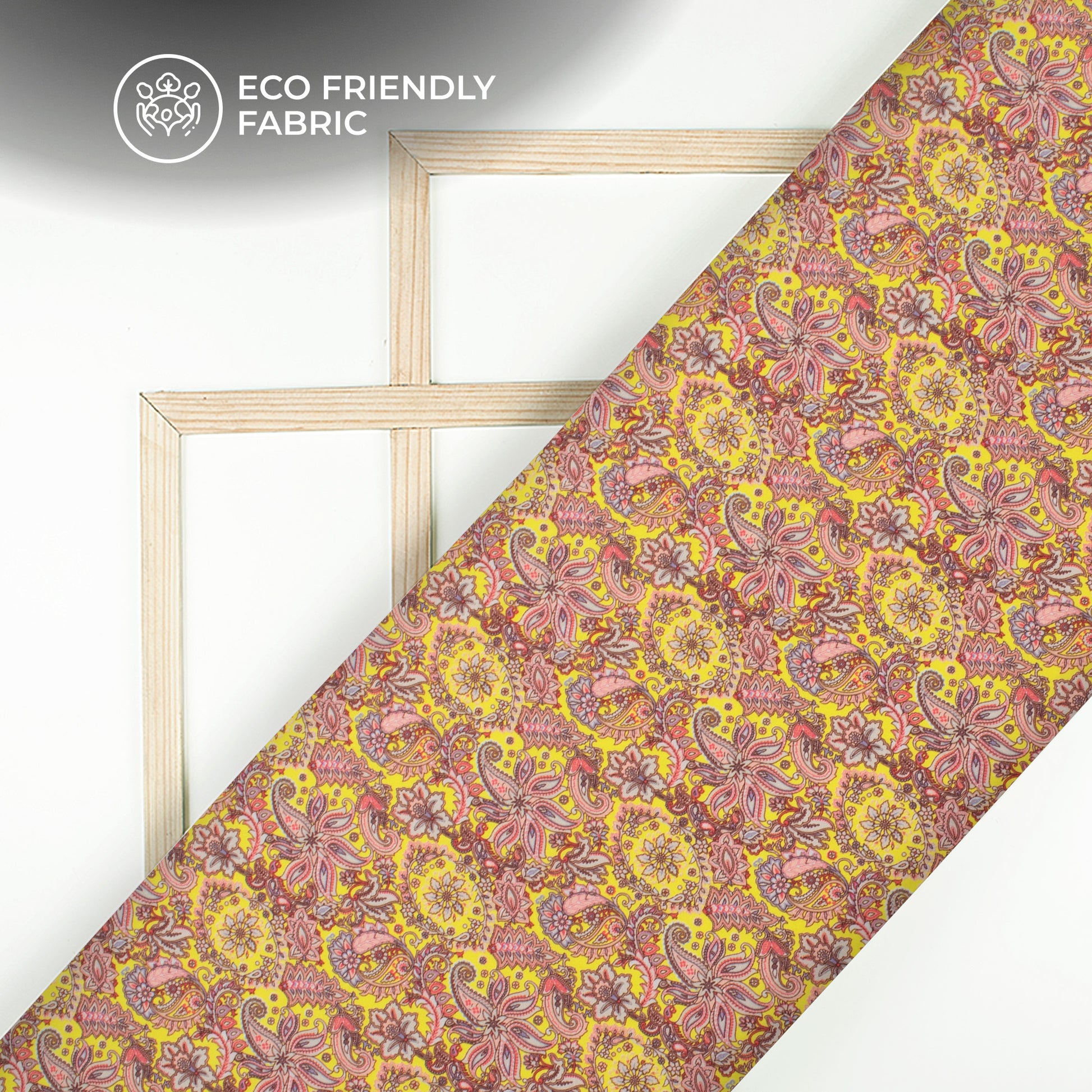 Yellow Floral Pattern Digital Print Crepe Silk Fabric
