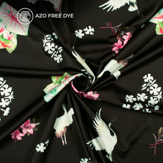 Attractive Floral Digital Print Assami Bemberg Satin Fabric Attractive Floral Digital Print Assami Bemberg Satin Fabric