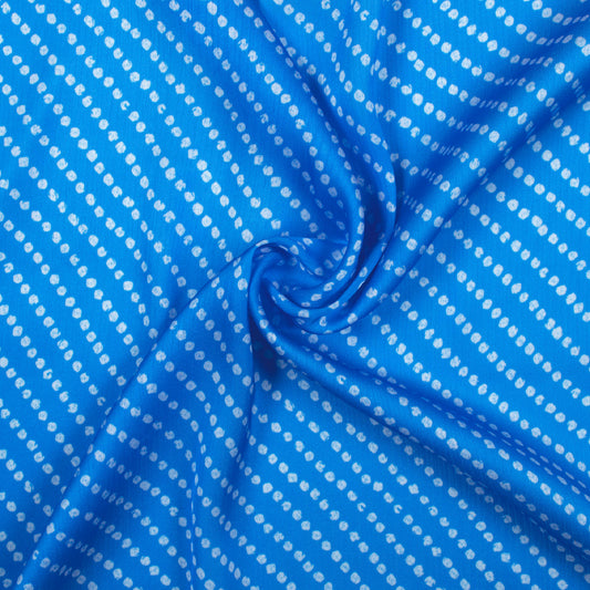 Azure Blue And White Bandhanii Pattern Digital Print Chiffon Satin Fabric Azure Blue And White Bandhanii Pattern Digital Print Chiffon Satin Fabric