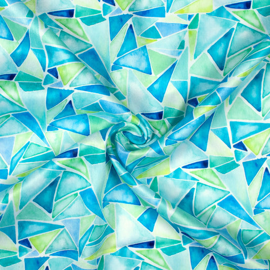 Azure Blue And Green Geometric Pattern Digital Print Lush Satin Fabric Azure Blue And Green Geometric Pattern Digital Print Lush Satin Fabric