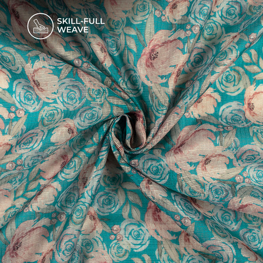 -12% offAzure Blue And Peach Floral Digital Print Kota Doria Fabric Azure Blue And Peach Floral Digital Print Kota Doria Fabric