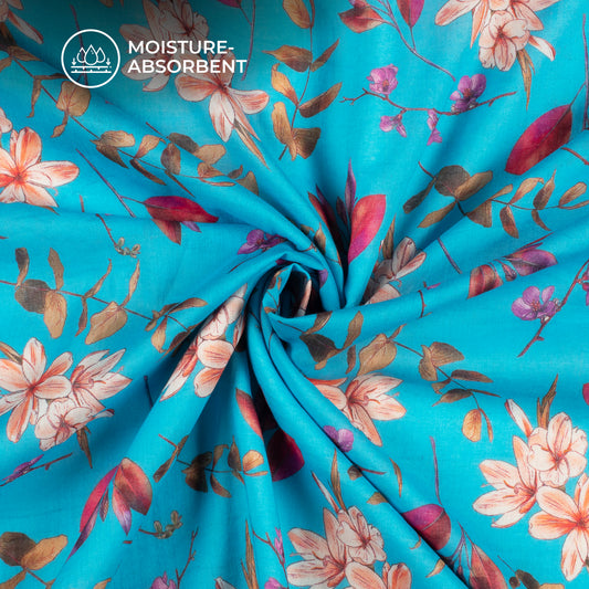 -11% offAzure Blue Floral Digital Print Pure Cotton Mulmul Fabric Azure Blue Floral Digital Print Pure Cotton Mulmul Fabric