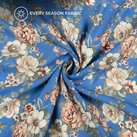 -7% offAzure Blue Floral Digital Print Butter Crepe Fabric Azure Blue Floral Digital Print Butter Crepe Fabric