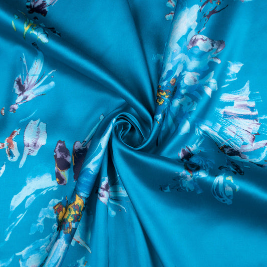 -8% offAzure Blue Floral Digital Print Organza Satin Fabric Azure Blue Floral Digital Print Organza Satin Fabric