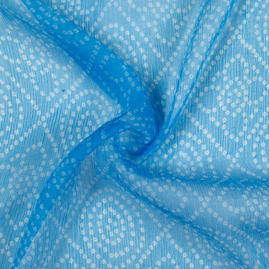 -7% offAzure Blue And White Bandhanii Pattern Digital Print Bemberg Chiffon Fabric Azure Blue And White Bandhanii Pattern Digital Print Bemberg Chiffon Fabric