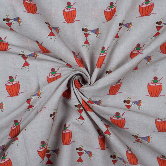 Babita's Choice Dolphin Grey And Red Quirky Pattern Digital Print Cotton Cambric Fabric Babita's Choice Dolphin Grey And Red Quirky Pattern Digital Print Cotton Cambric Fabric