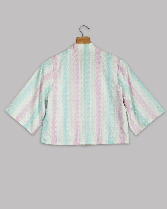 Floral Embroidery Puff Sleeve Jacket