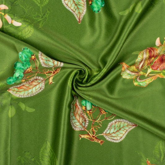 Basil Green Floral Pattern Digital Print Lush Satin Fabric Basil Green Floral Pattern Digital Print Lush Satin Fabric