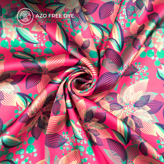 -10% offBarbie Pink Floral Digital Print Japan Satin Fabric Barbie Pink Floral Digital Print Japan Satin Fabric