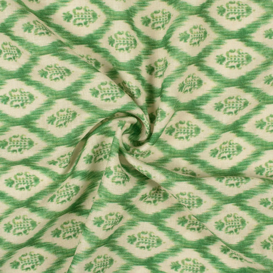 Basil Green And Off White Floral Pattern Digital Print Linen Textured Fabric (Width 56 Inches) Basil Green And Off White Floral Pattern Digital Print Linen Textured Fabric (Width 56 Inches)