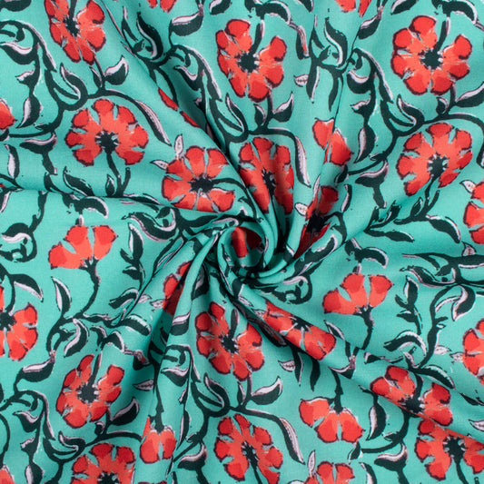 Turquoise And Red Floral Pattern Digital Print Charmeuse Satin Fabric (Width 58 Inches) Turquoise And Red Floral Pattern Digital Print Charmeuse Satin Fabric (Width 58 Inches)Regular price ₹ 449.00 /meterUnit price perSale price ₹ 449.00 Regular price₹ 565.00/meter20% offSale