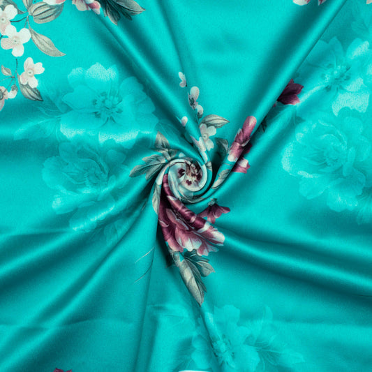 Turquoise And White Floral Pattern Digital Print Premium Lush Satin Fabric Turquoise And White Floral Pattern Digital Print Premium Lush Satin FabricRegular price ₹ 499.00 /meterUnit price perSale price ₹ 499.00 Regular price₹ 0.00/meter