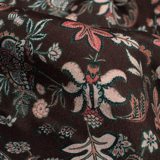 -7% offUmber Brown And Beige Floral Pattern Digital Print Crepe Silk Fabric Umber Brown And Beige Floral Pattern Digital Print Crepe Silk Fabric