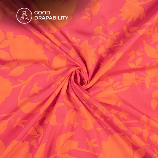 -10% offVermilion Orange Floral Digital Print Imported Satin Fabric Vermilion Orange Floral Digital Print Imported Satin Fabric
