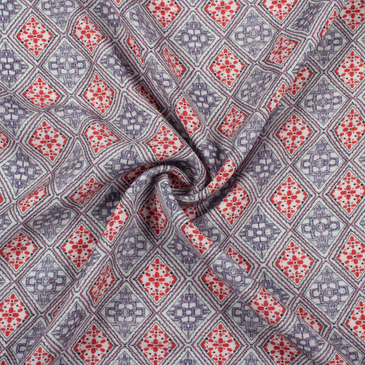 Vermilion Red And Blue Geometric Pattern Digital Print Viscose Rayon Fabric (Width 58 Inches) Vermilion Red And Blue Geometric Pattern Digital Print Viscose Rayon Fabric (Width 58 Inches)