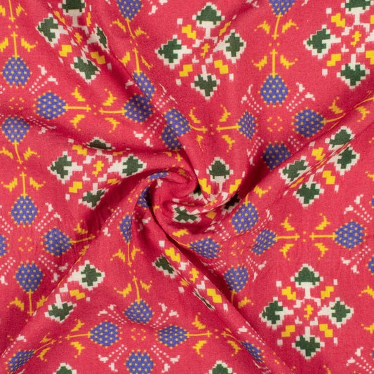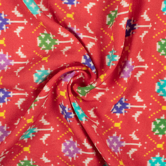 Vermilion Red And Blue Patolaa Pattern Digital Print Viscose Rayon Fabric (Width 58 Inches) Vermilion Red And Blue Patolaa Pattern Digital Print Viscose Rayon Fabric (Width 58 Inches)