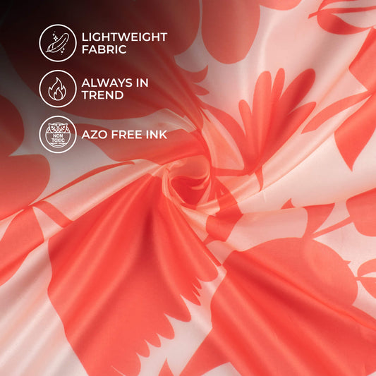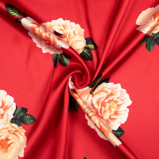-10% offVermilion Red And Peach Floral Pattern Digital Print Japan Satin Fabric Vermilion Red And Peach Floral Pattern Digital Print Japan Satin Fabric