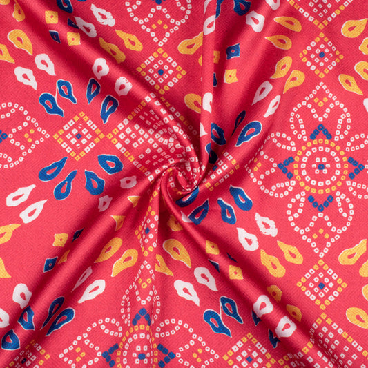 -10% offVermilion Red And Dark Blue Bandhanii Pattern Digital Print Japan Satin Fabric Vermilion Red And Dark Blue Bandhanii Pattern Digital Print Japan Satin Fabric