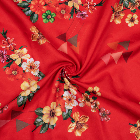 Vermilion Red And Musturd Yellow Floral Pattern Digital Print Ultra Premium Butter Crepe Fabric Vermilion Red And Musturd Yellow Floral Pattern Digital Print Ultra Premium Butter Crepe Fabric