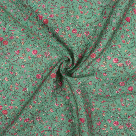 Viridian Green And Red Floral Pattern Digital Print Viscose Chanderi Fabric Viridian Green And Red Floral Pattern Digital Print Viscose Chanderi Fabric