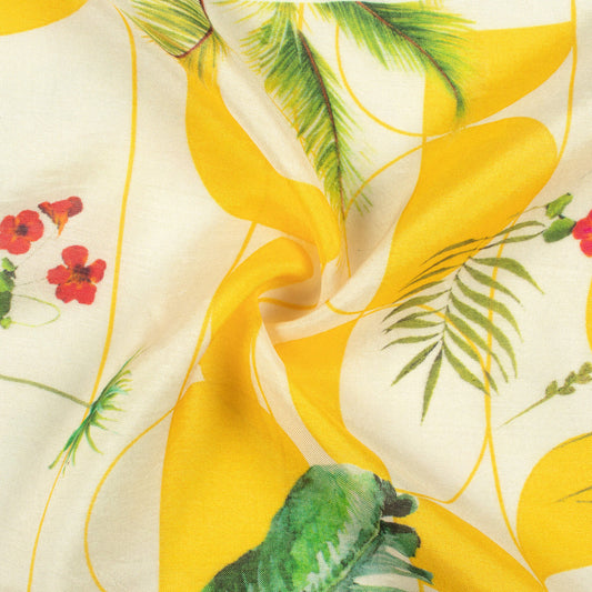 Vivid Yellow And Off White eometric Pattern Digital Print Viscose Muslin Fabric Vivid Yellow And Off White eometric Pattern Digital Print Viscose Muslin Fabric