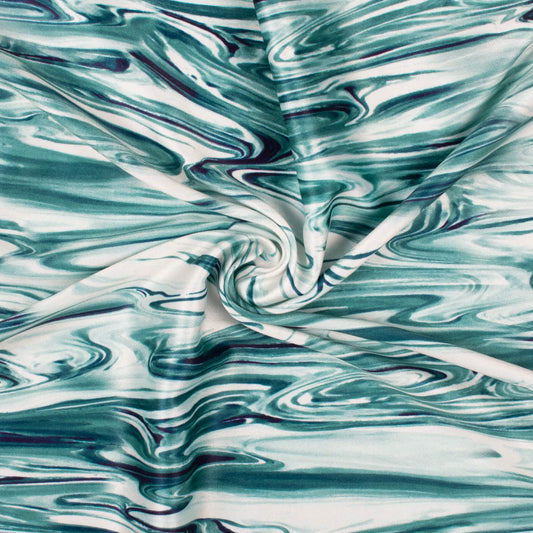 Viridian Green And White Marble Pattern Digital Print Lush Satin Fabric Viridian Green And White Marble Pattern Digital Print Lush Satin Fabric