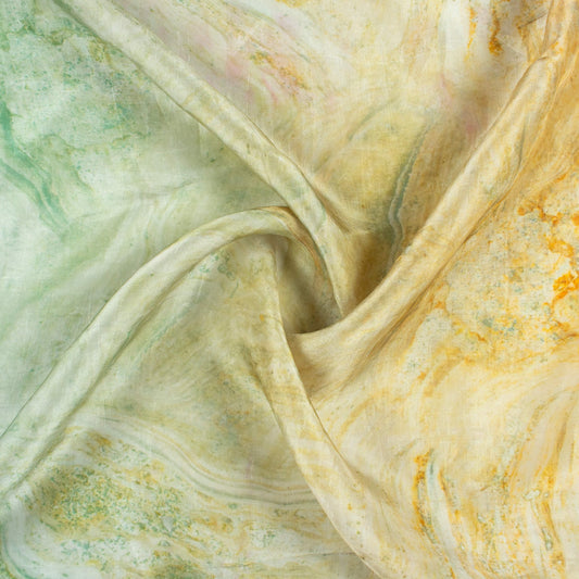 Viridian Green And Yellow Marble Pattern Digital Print Viscose Uppada Silk Fabric Viridian Green And Yellow Marble Pattern Digital Print Viscose Uppada Silk Fabric
