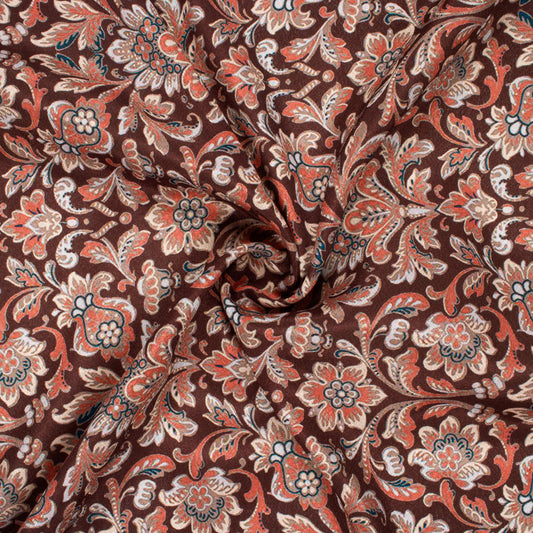 -7% offWalnut Brown And Red Floral Pattern Digital Print Crepe Silk Fabric Walnut Brown And Red Floral Pattern Digital Print Crepe Silk Fabric