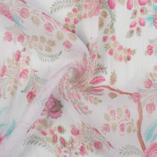 -10% offWhite And Green Floral Pattern Digital Print Georgette Fabric White And Green Floral Pattern Digital Print Georgette Fabric