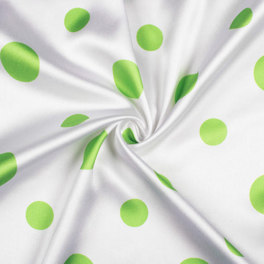 -10% offWhite And Green Polka Dots Digital Print Japan Satin Fabric White And Green Polka Dots Digital Print Japan Satin Fabric