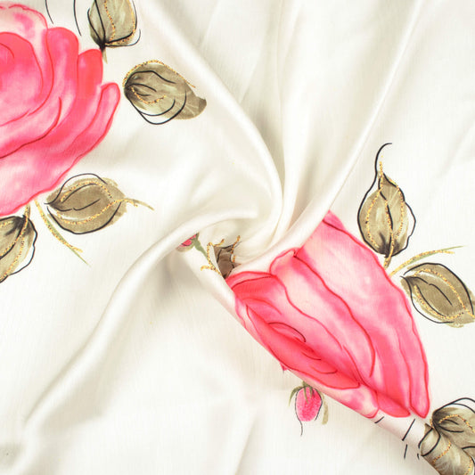 White And Punch Pink Floral Pattern Hand Paint Effect Digital Print Chiffon Satin Fabric White And Punch Pink Floral Pattern Hand Paint Effect Digital Print Chiffon Satin Fabric