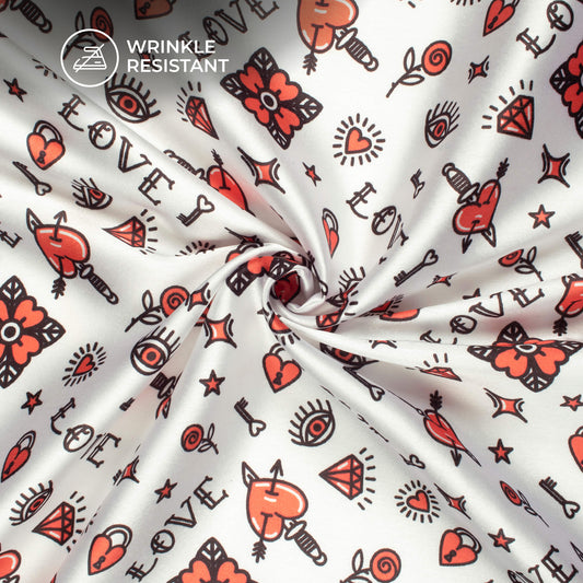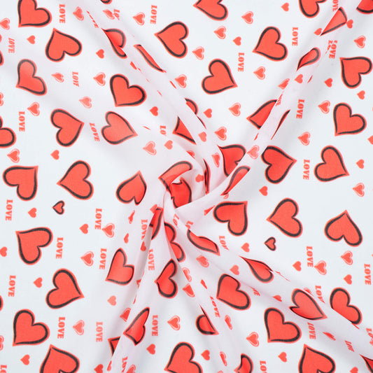 -10% offWhite And Red Heart Pattern Digital Print Georgette Fabric White And Red Heart Pattern Digital Print Georgette Fabric