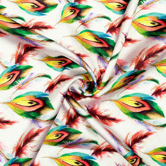 -10% offWhite And Red Peacock Feather Pattern Digital Print Japan Satin Fabric White And Red Peacock Feather Pattern Digital Print Japan Satin Fabric